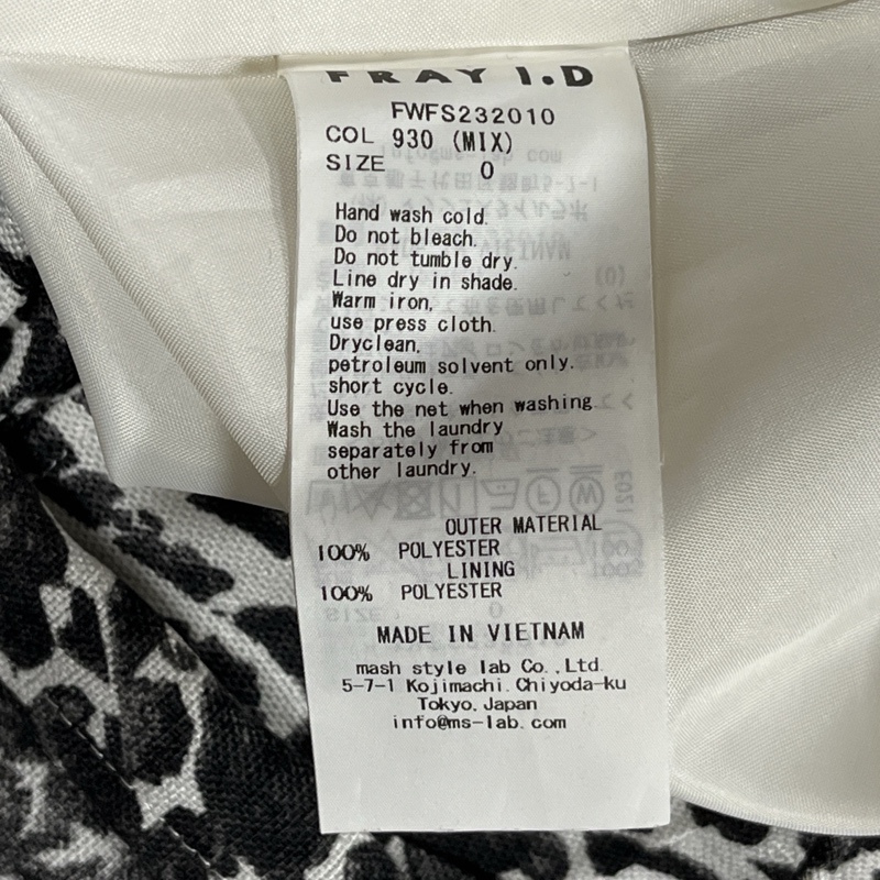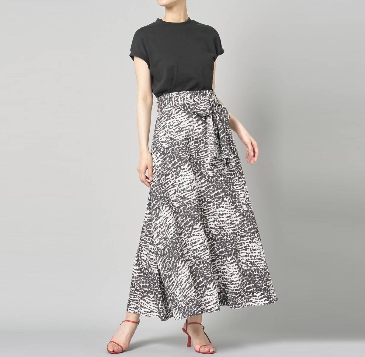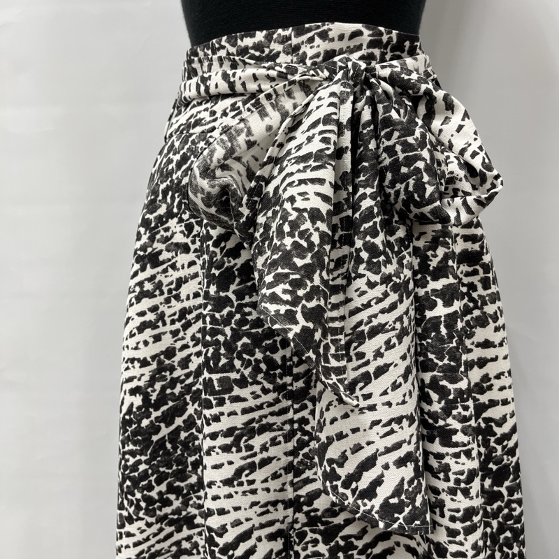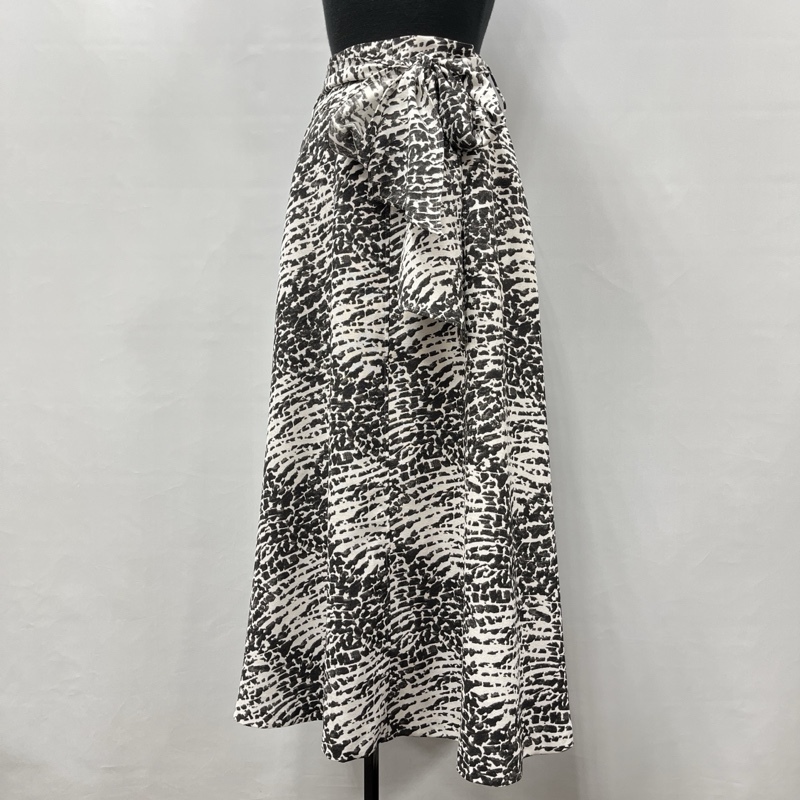 ●FRAY I.D/フレイアイディー/リボンベルトフレアースカート/総柄/モノトーン/ウエスト同布リボンベルト×ゴムウエスト/ロングスカート