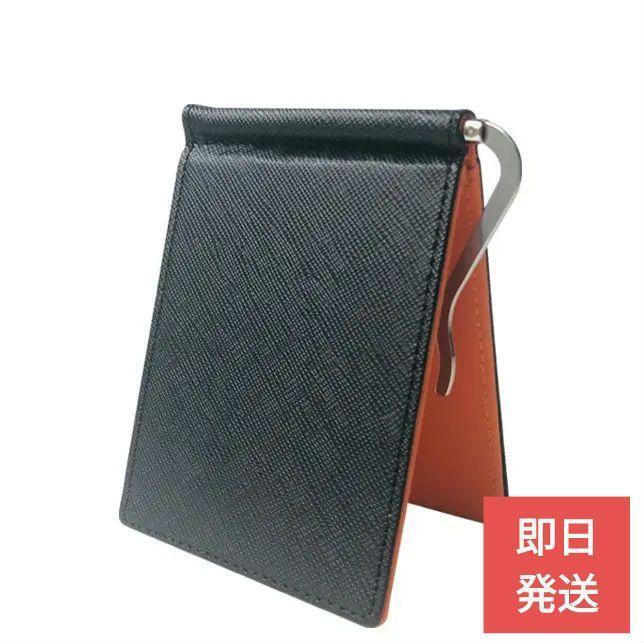 送料無料【新品】マネークリップ ブラック/オレンジ【コンパクト】二つ折り財布
