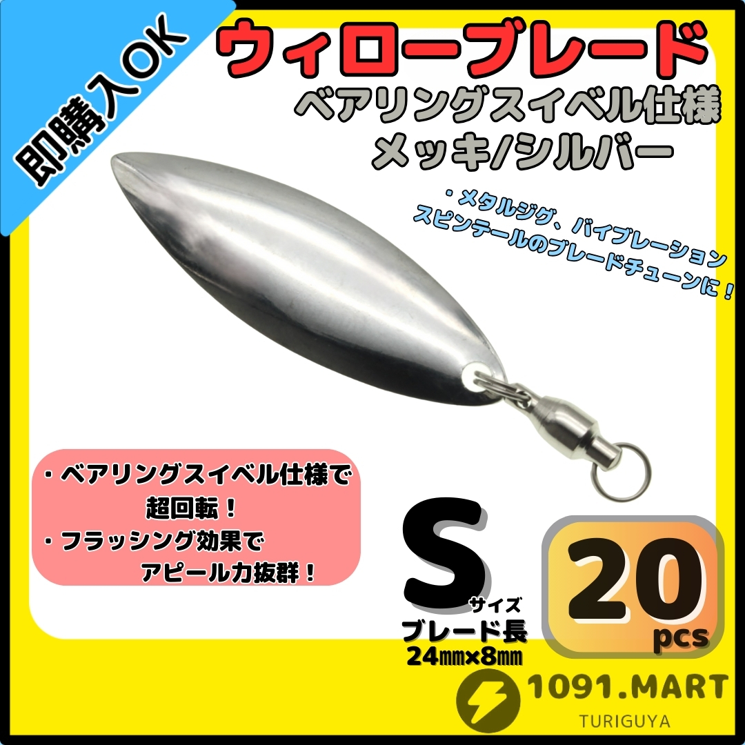 【送料無料】ウィローブレード メッキ/シルバー Sサイズ 20個セット ボールベアリングスイベル付きスピンテールブレード ブレードチューン