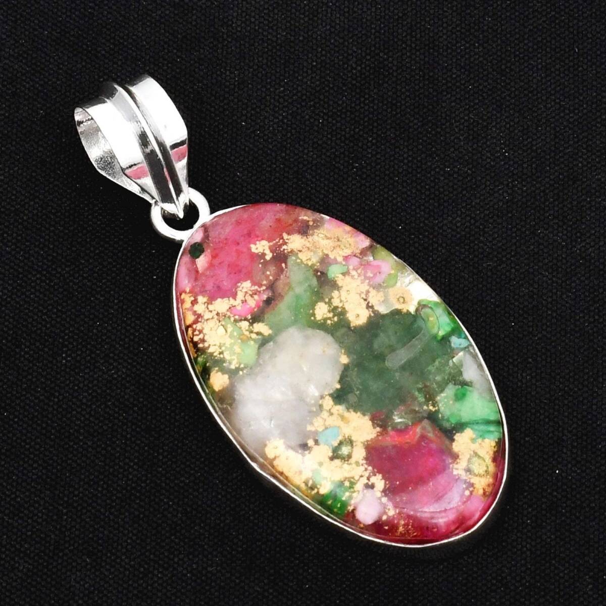ターコイズ ペンダント ネックレス 手元に有ります。 オイスターターコイズ ジェムストーン ハンドメイドペンダント 約5.3㎝