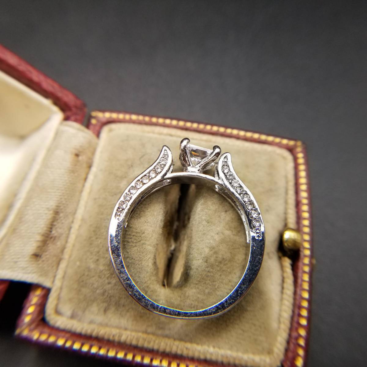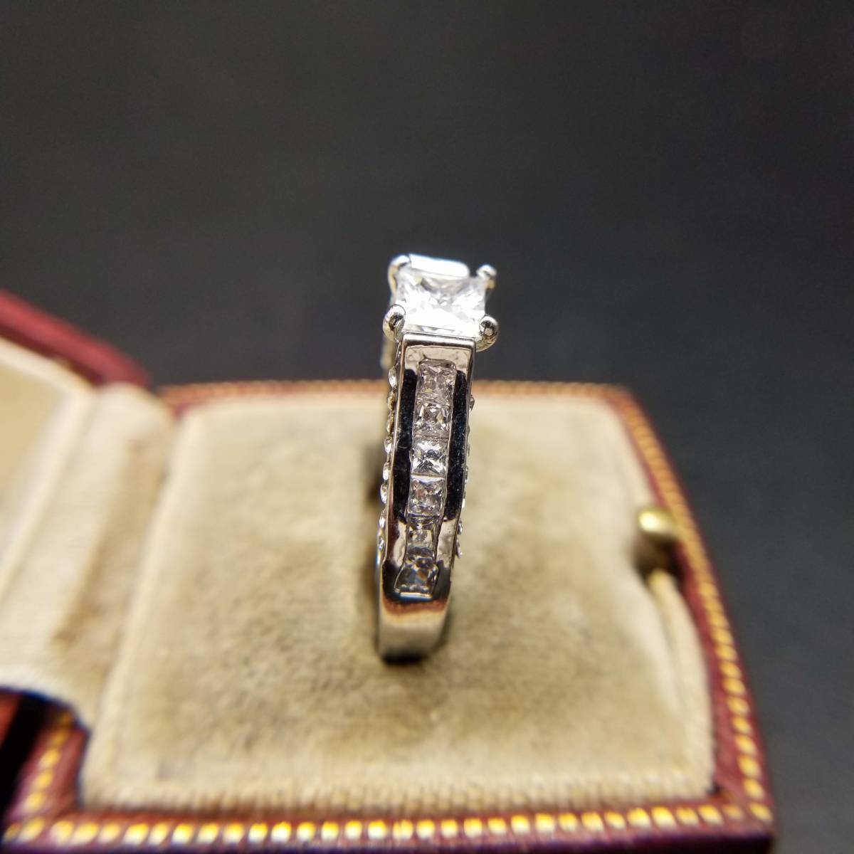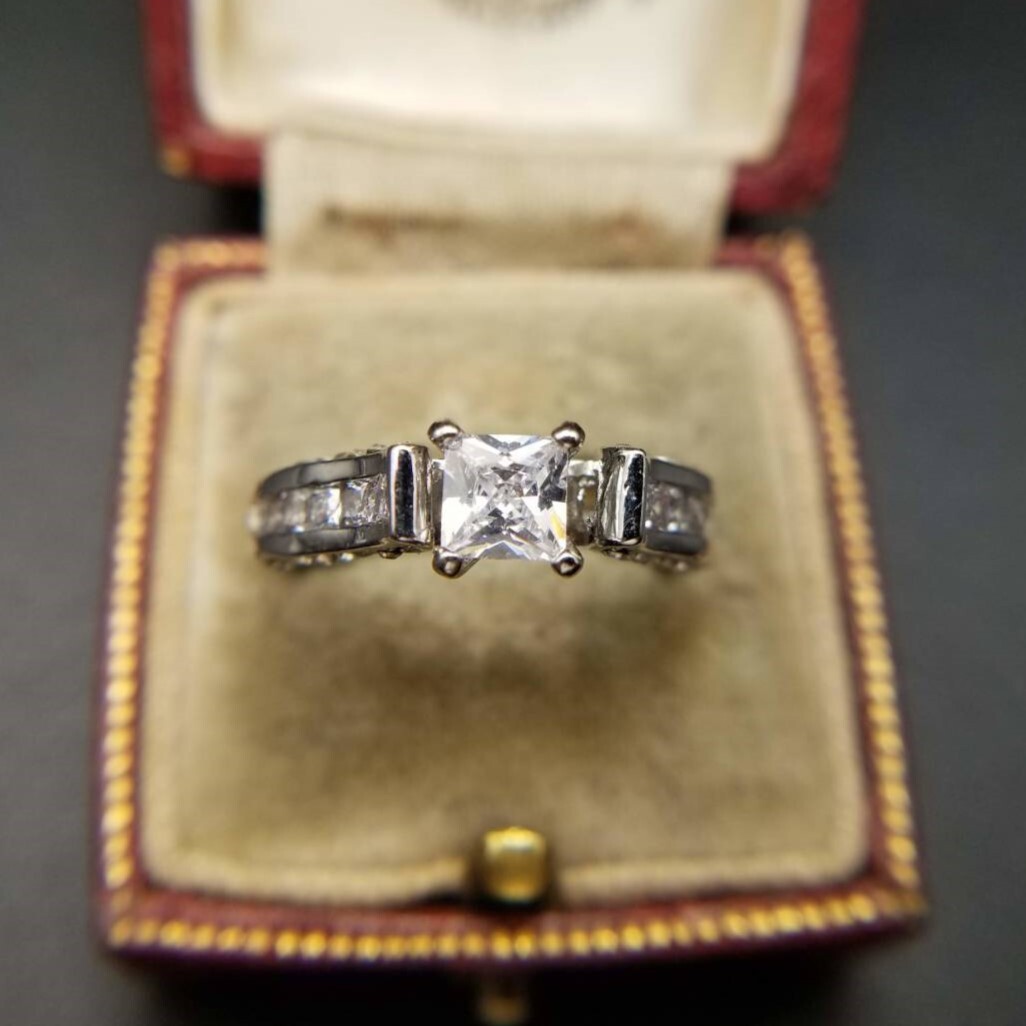 キュービックジルコニア プリンセスカット 925 シルバー ヴィンテージ リング 銀 指輪 サイド装飾 上品 エレガント 大きめサイズ YGH