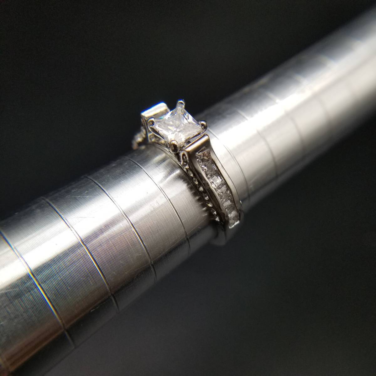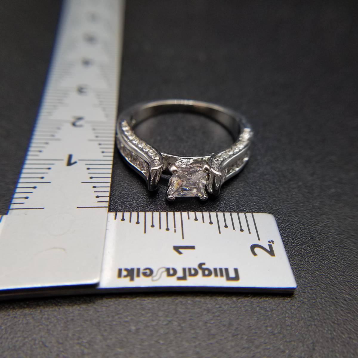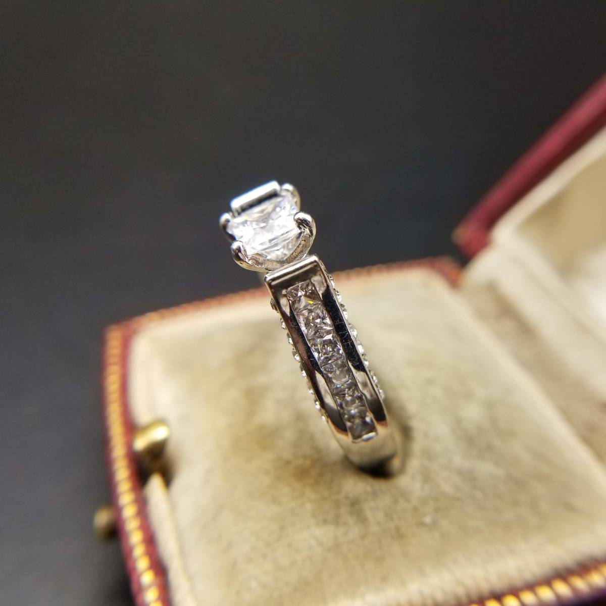 キュービックジルコニア プリンセスカット 925 シルバー ヴィンテージ リング 銀 指輪 サイド装飾 上品 エレガント 大きめサイズ YGH