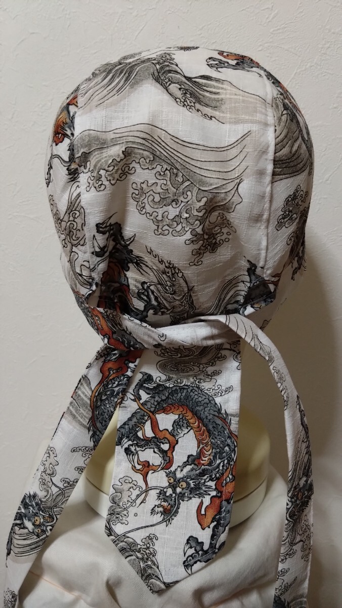 ★バンダナキャップ★ハンドメイド 和柄 竜と波 炎 白