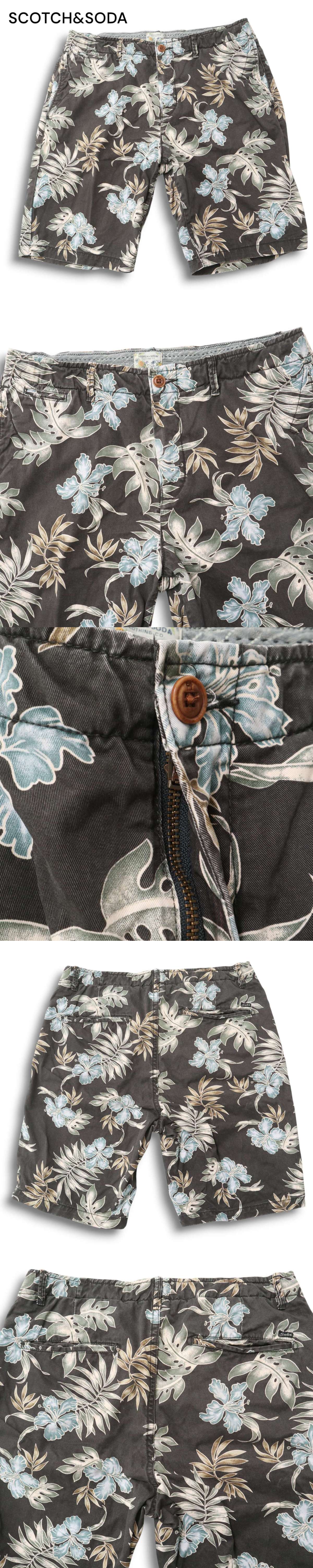 SCOTCH&SODA スコッチ&ソーダ 春夏★ トロピカル 花柄 フラワー 総柄 ショート パンツ Sz.34 メンズ 大きいサイズ