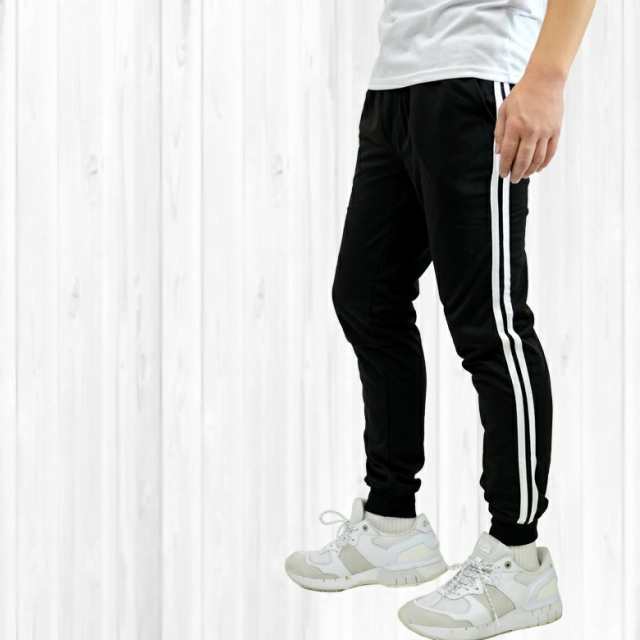 無地、サイドラインの豊富なバリエーションのスウェットジョガーパンツ。