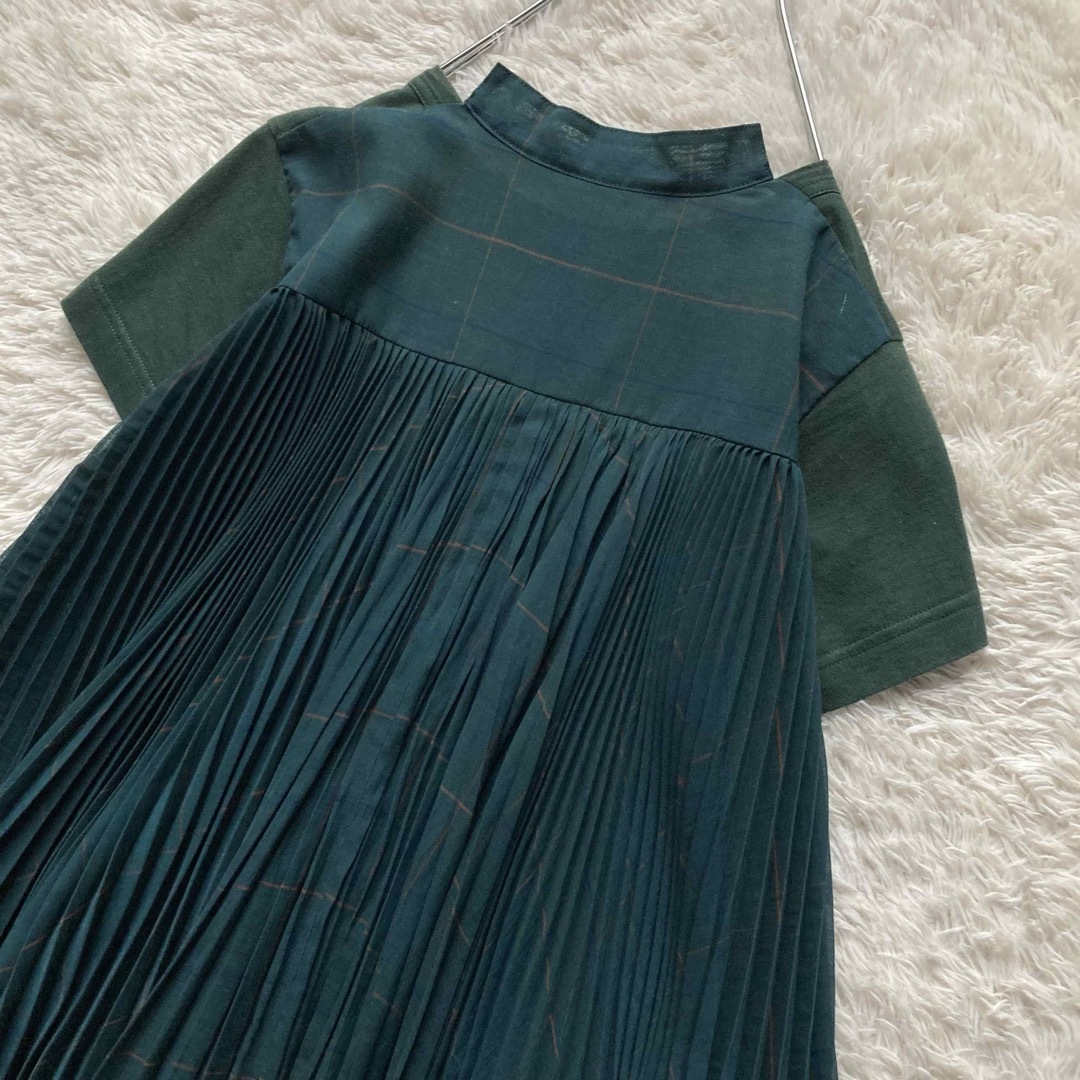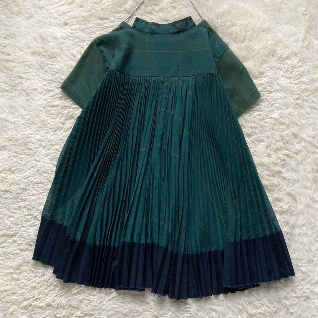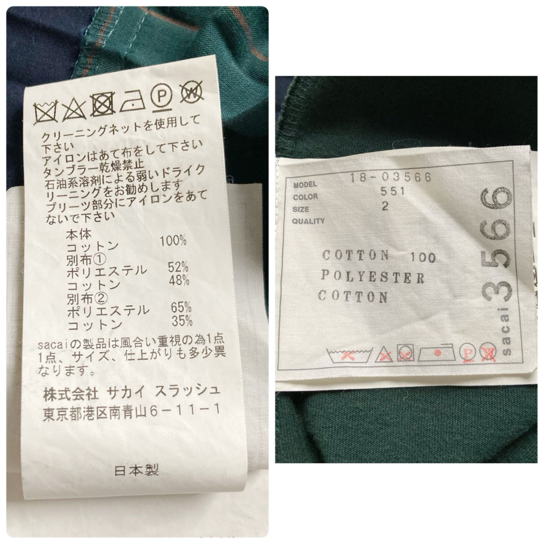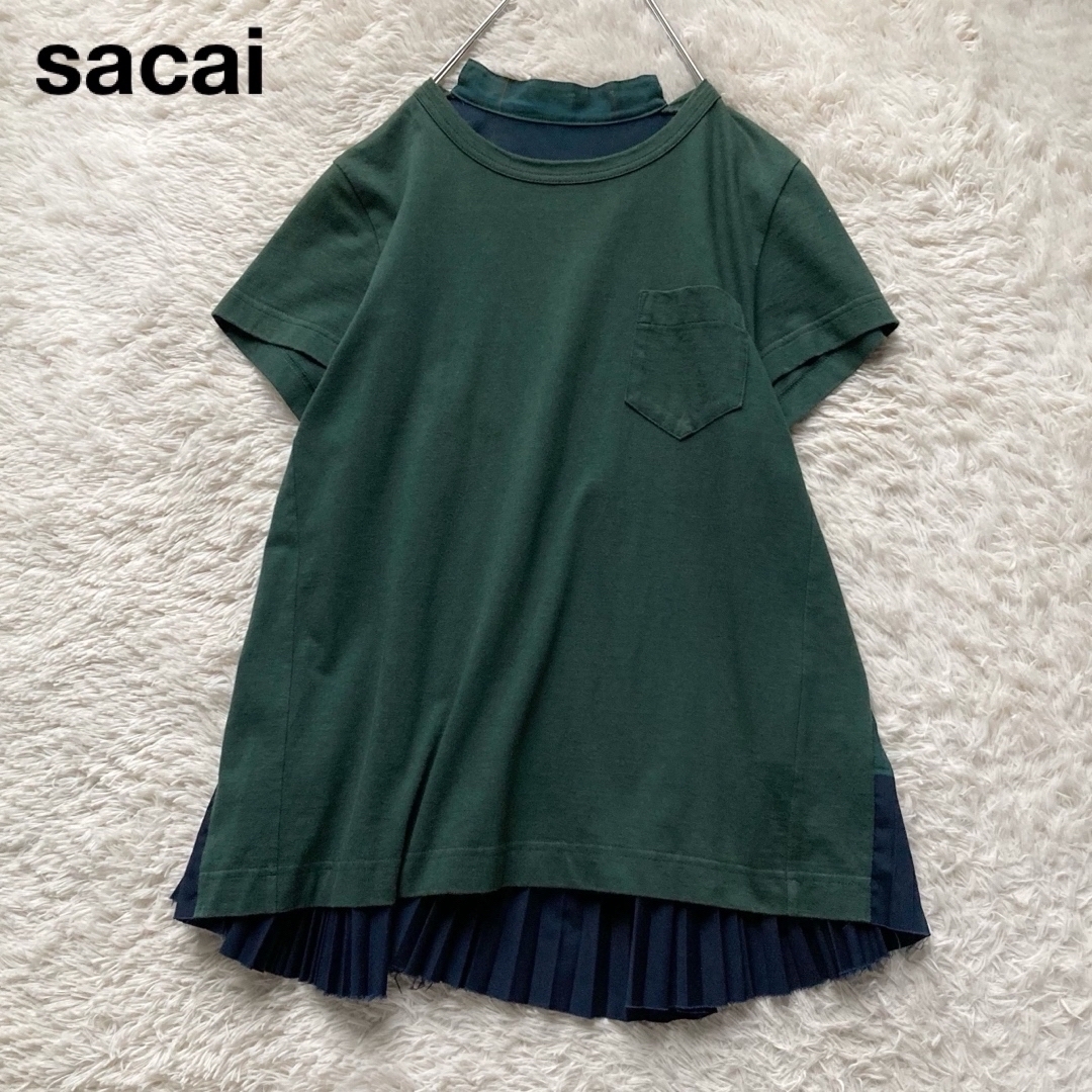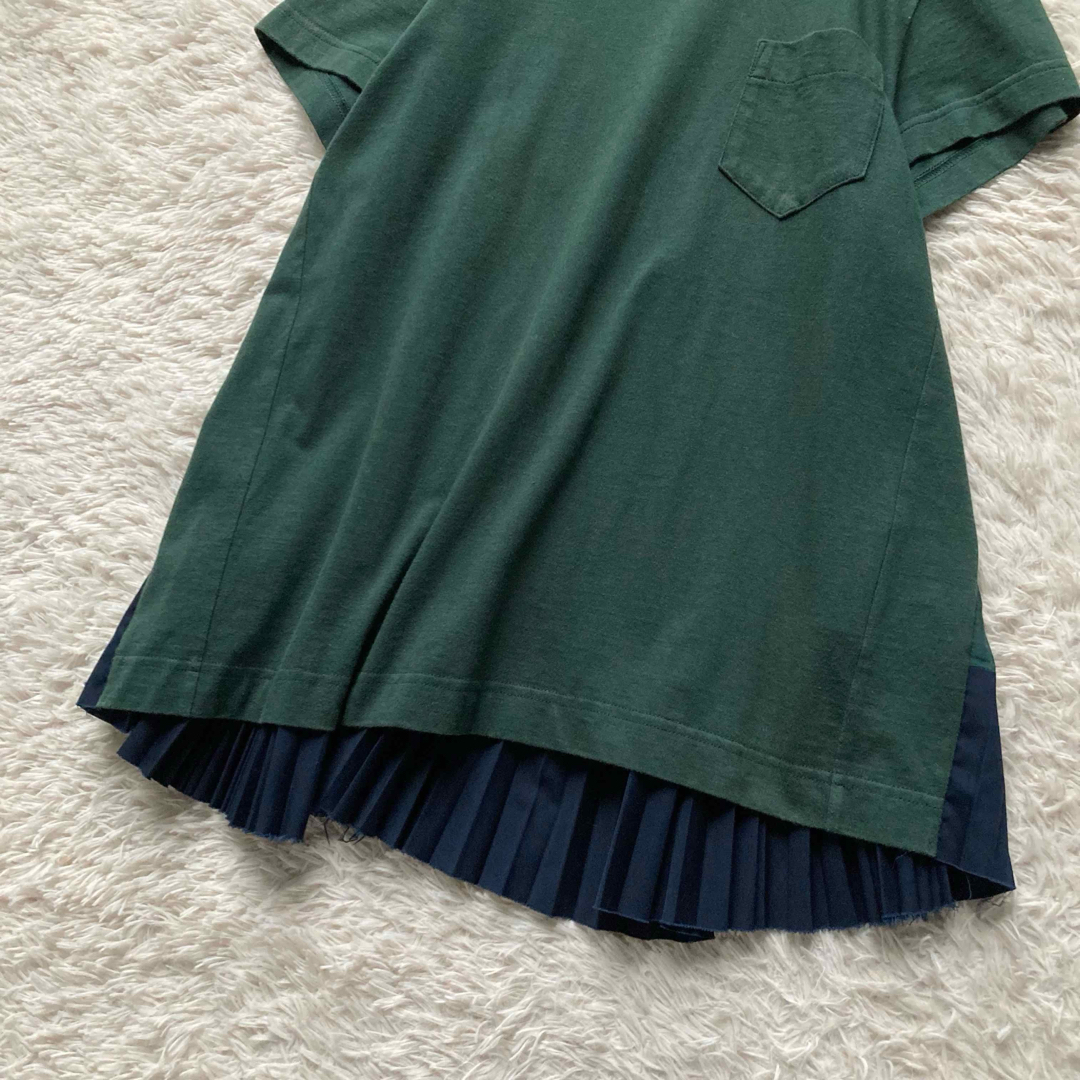 サカイ Sacai 半袖カットソー プルオーバー バックプリーツ チェック柄 異素材ドッキング 切替 胸ポケット クルーネック 日本製