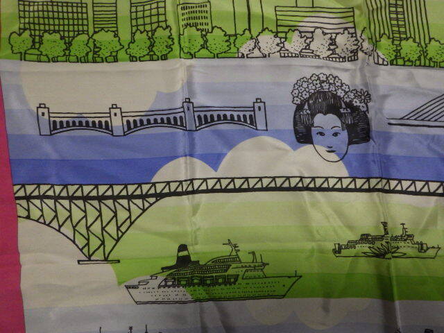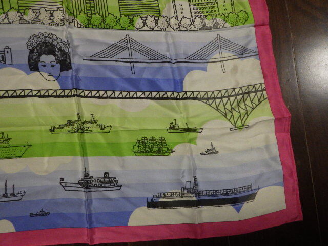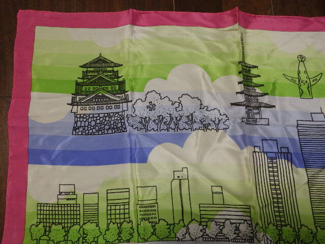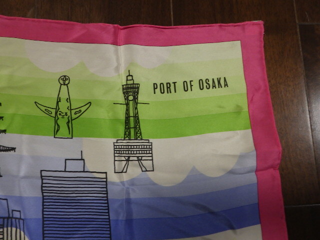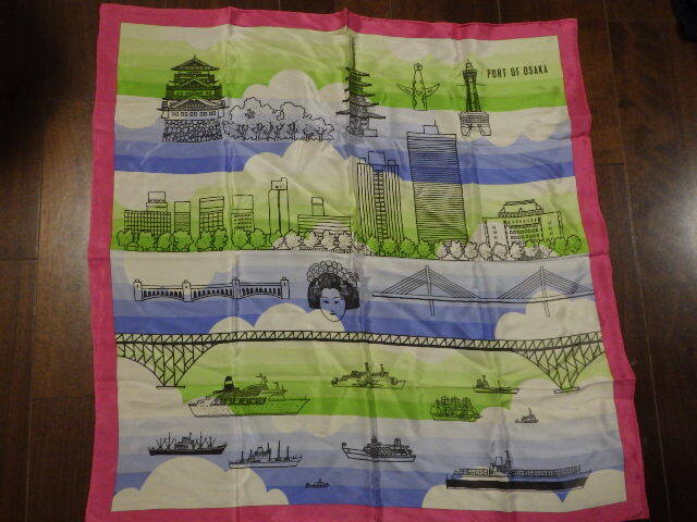 未使用 日本製 大阪 PORT OF OSAKA スカーフ シルク100 通天閣 太陽の塔 舞妓さん? ARA