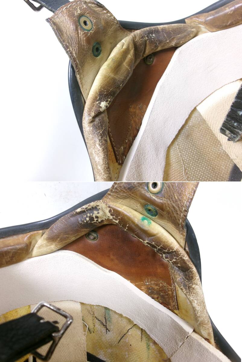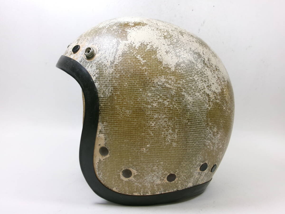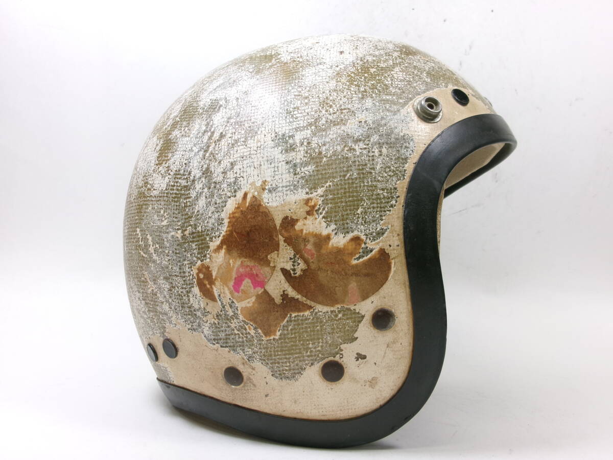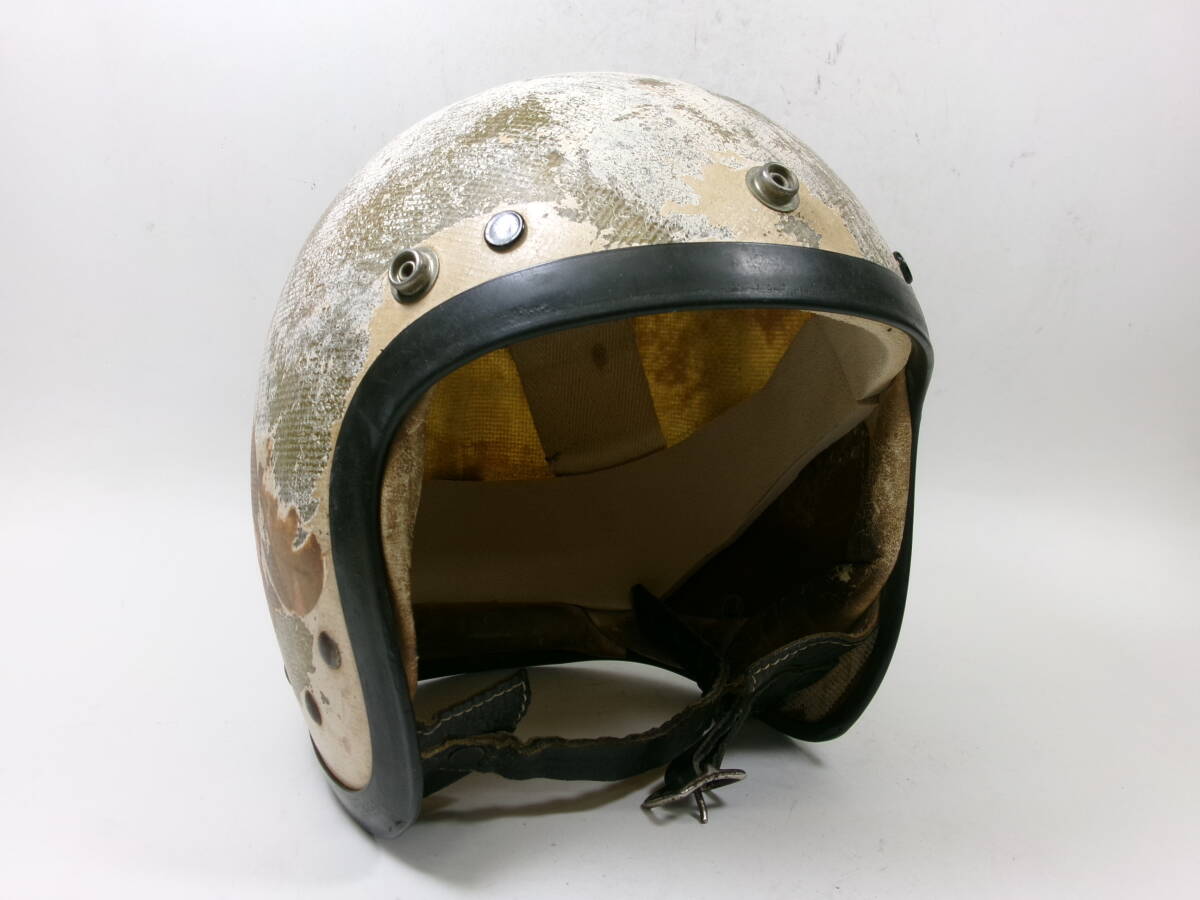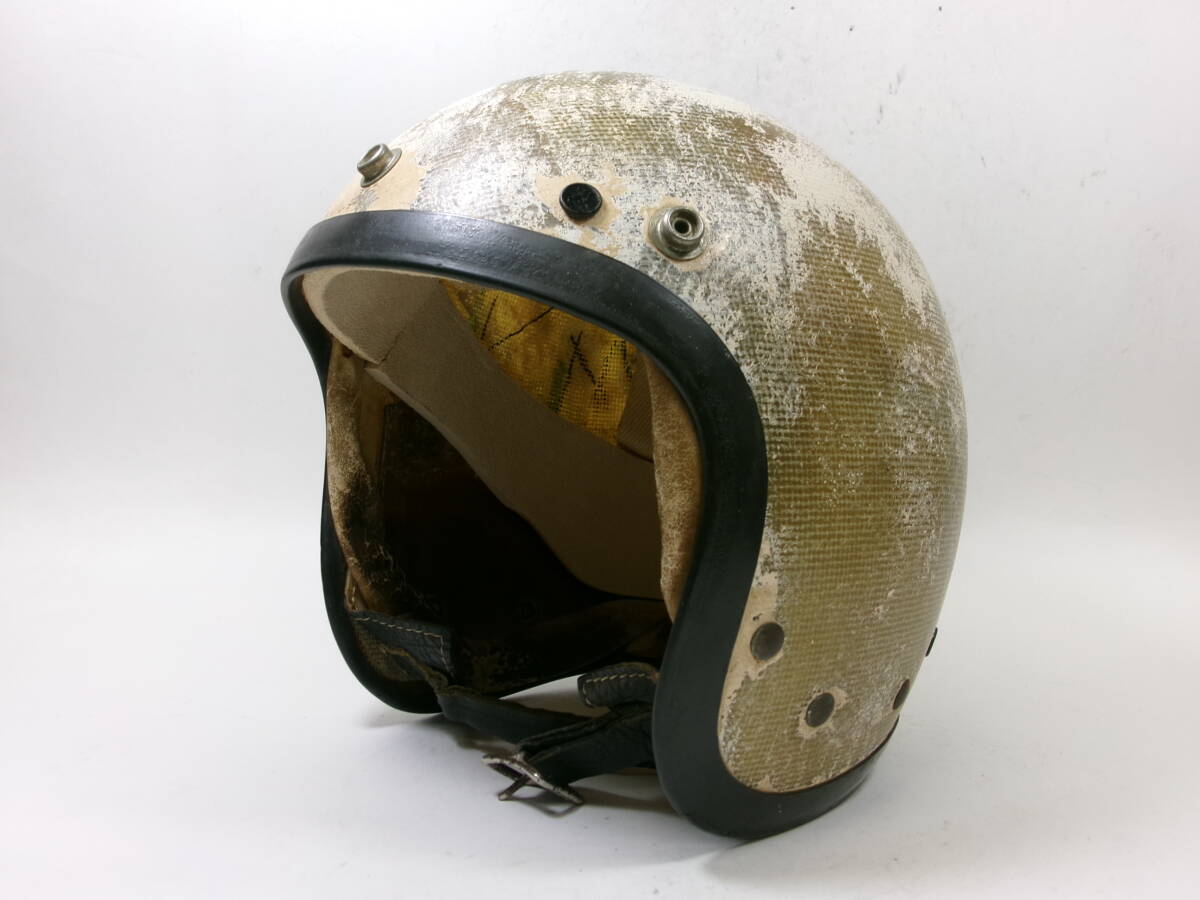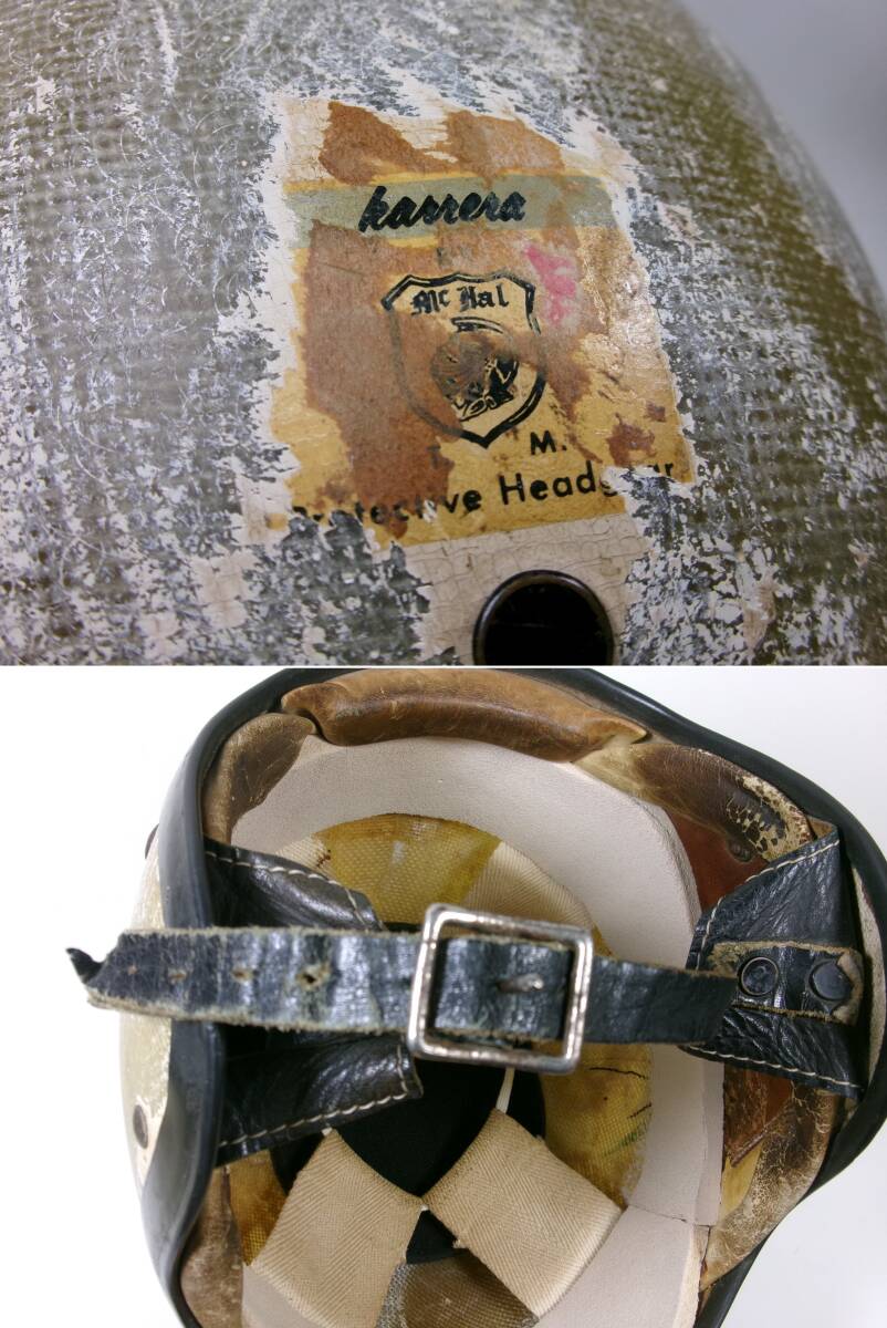 ■外装状態: 画像をご覧とおり非常にいい雰囲気出ています。 ■内装状態: 現状で使用可能です。 ■サイズ: 表記ありませんが元はSサイズ相当です。内装加工済みなのでMサイズ (約58cm)位です。 若干の誤差はご了承下さい。 ■コメント: 50s McHAL KARRERA ジェットヘルメットです。 500TX(Mシェル)との比較画像をご覧のとおり帽体も小さく、内装加工済みなので目深く被れシルエットも最高です。 オリペン、デカール類もオリジナルです。 小顔の方に似合と思います。お好きな方はこの機会に是非! ※装飾用です。公道での使用はお控えください。 |