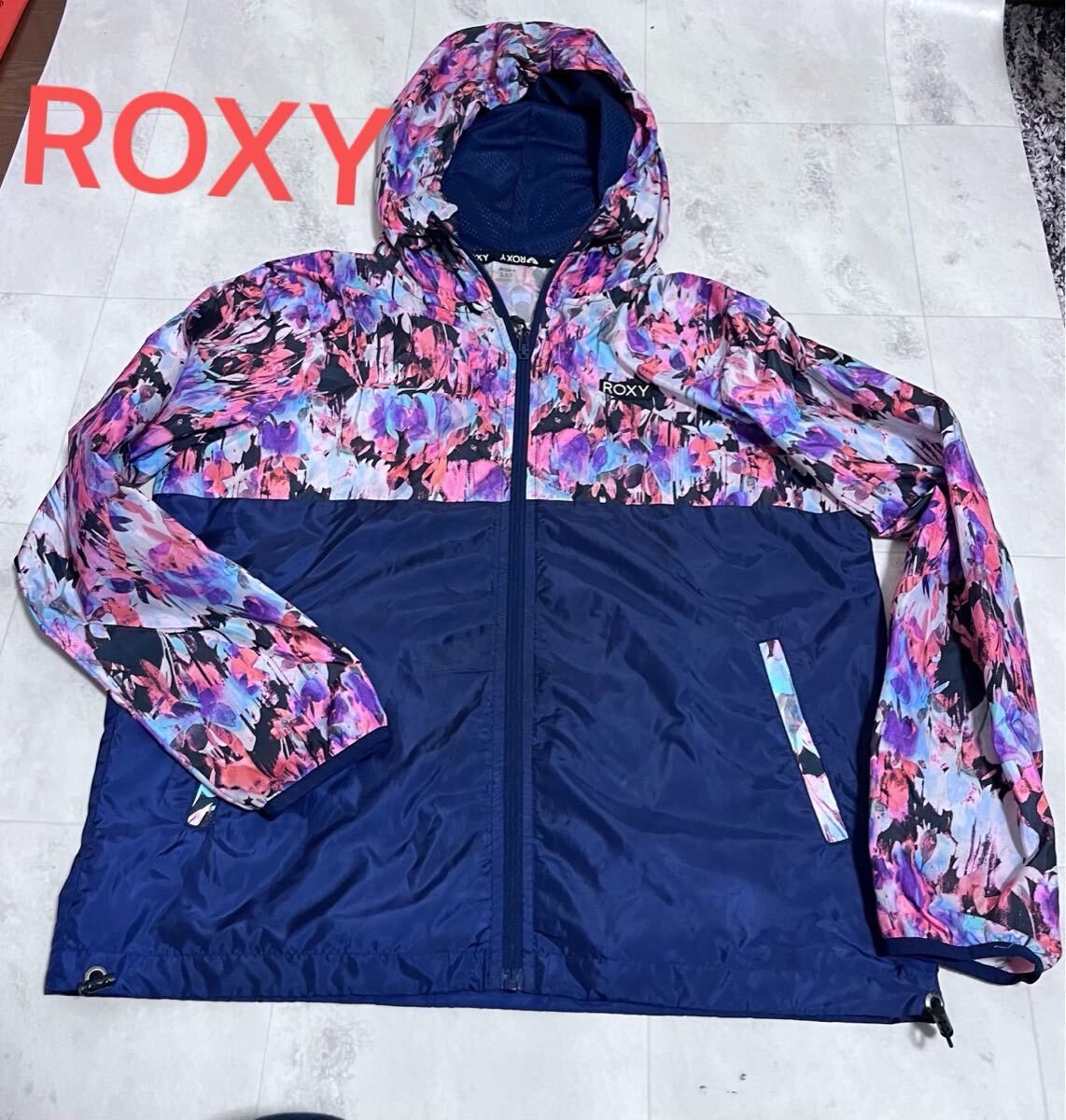 ロキシー ROXY 薄手 花柄 ハワイアン柄 ナイロンジップパーカー サイズM