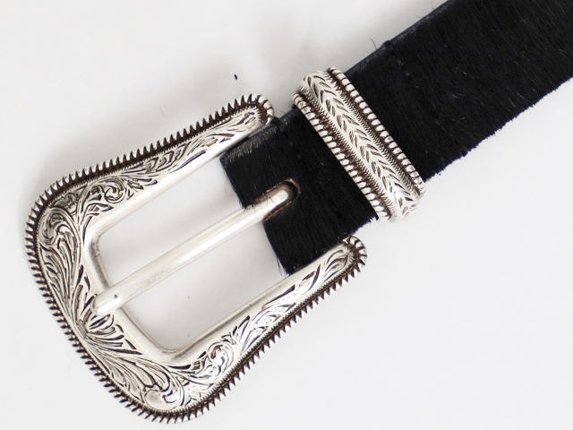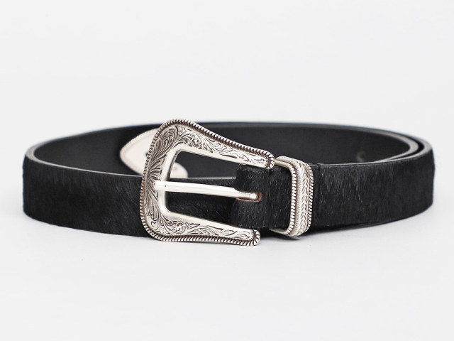 新品 W30 Wrangler HIAR ON HIDE WESTERN BELT BLACK ラングラー ハラコ ヘアオンハイド ウエスタンベルト ブラック 牛革