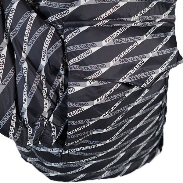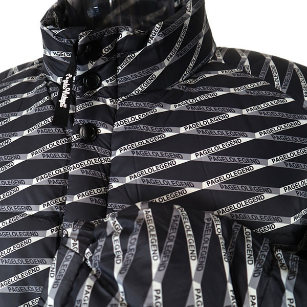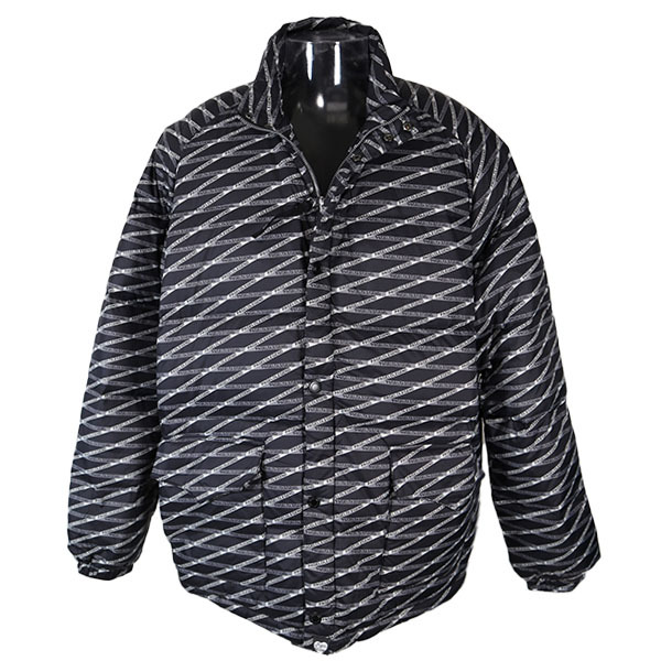 ■形状/ ロゴのプリント柄ダウンジャケットです。 後衿元にロゴプレート付き、ポケットは表に4ヶ所、内側に2ヶ所あります。 |