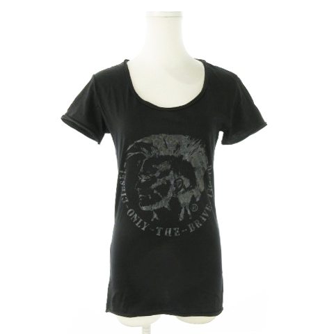 ディーゼル DIESEL 半袖Tシャツ ラウンドネック コットン プリント モヒカンマン ロゴ S 黒 ブラック /AO15 レディース