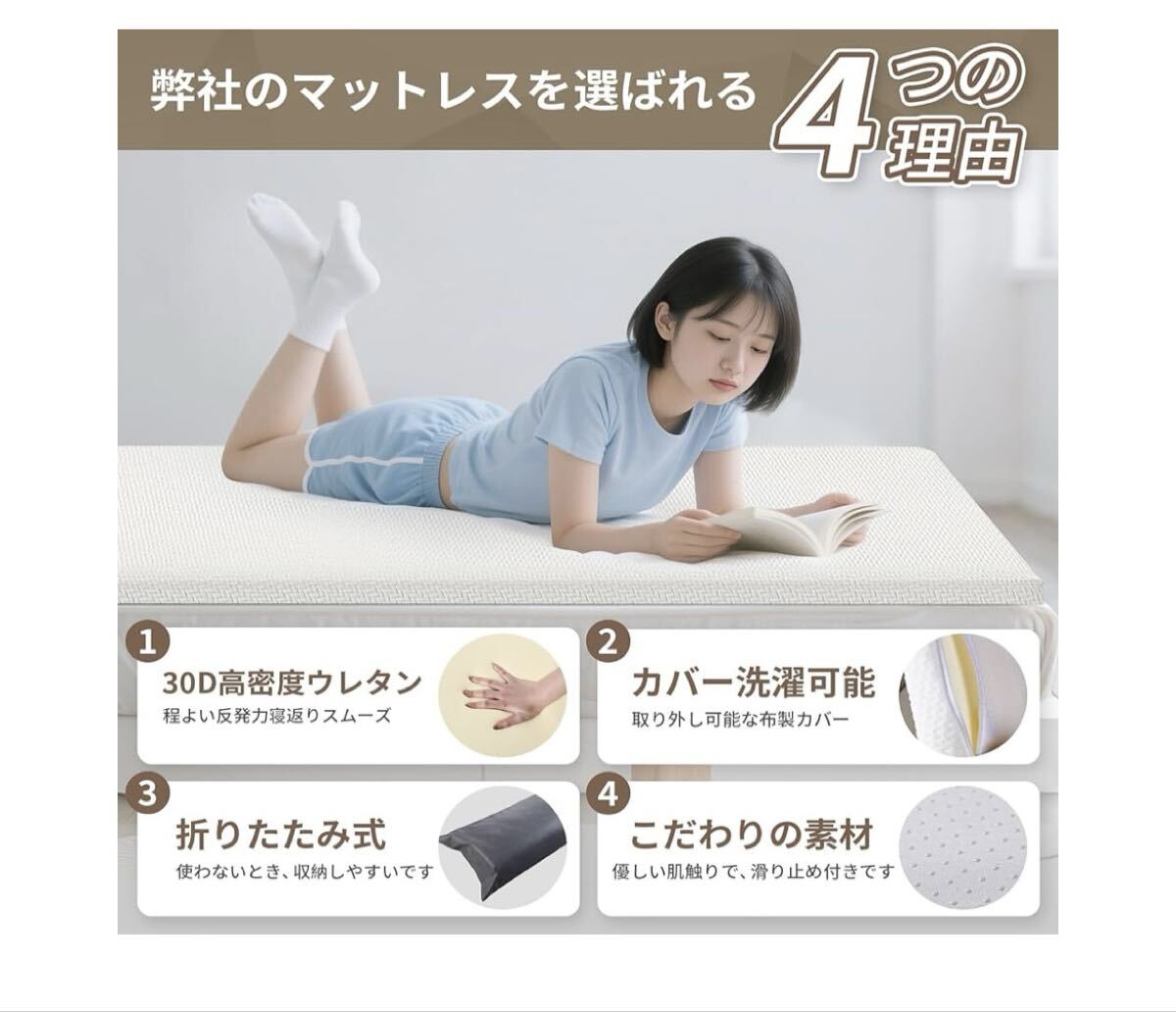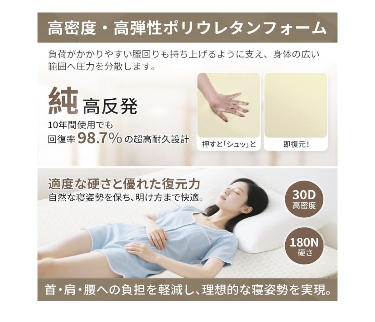ウレタン:厚さ3cmの180N高反発ウレタンフォーム