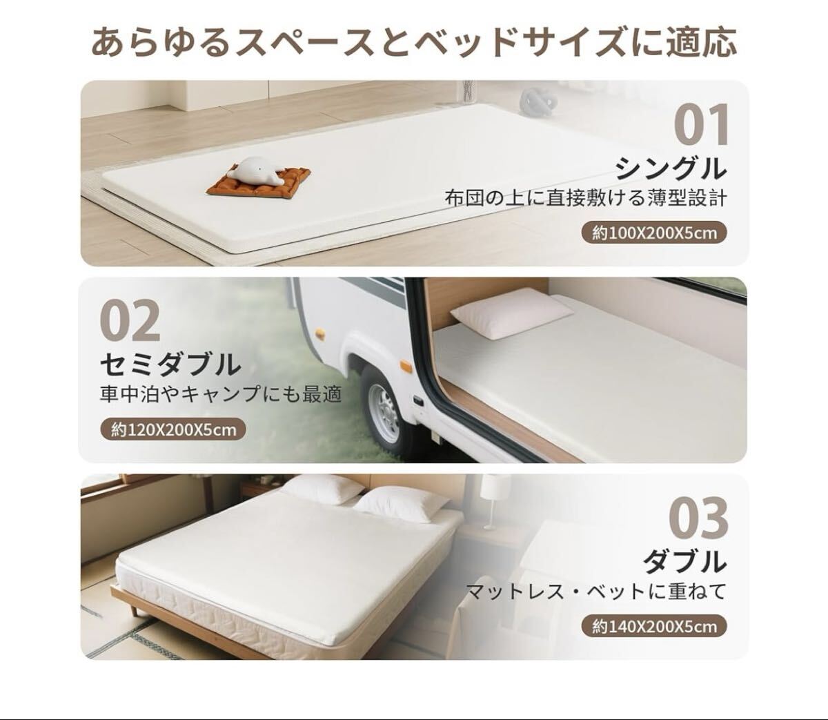 布団の上に敷いても、フローリングに直接敷いてもOK。さまざまなシーンでご利用いただけます。