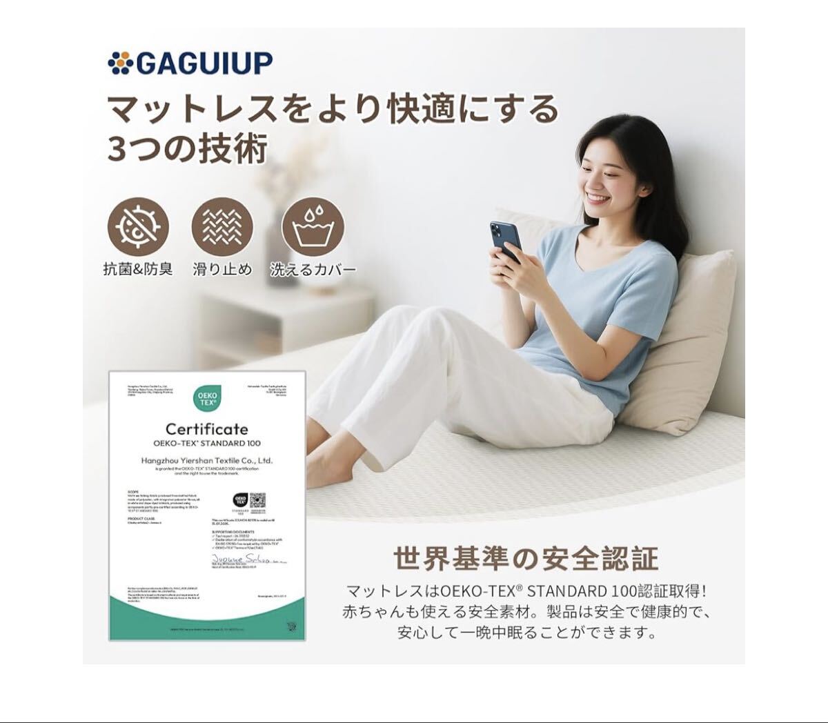 オリジナルカバーは優しい肌触りで、抗菌・防ダニ・防臭が対応しています。