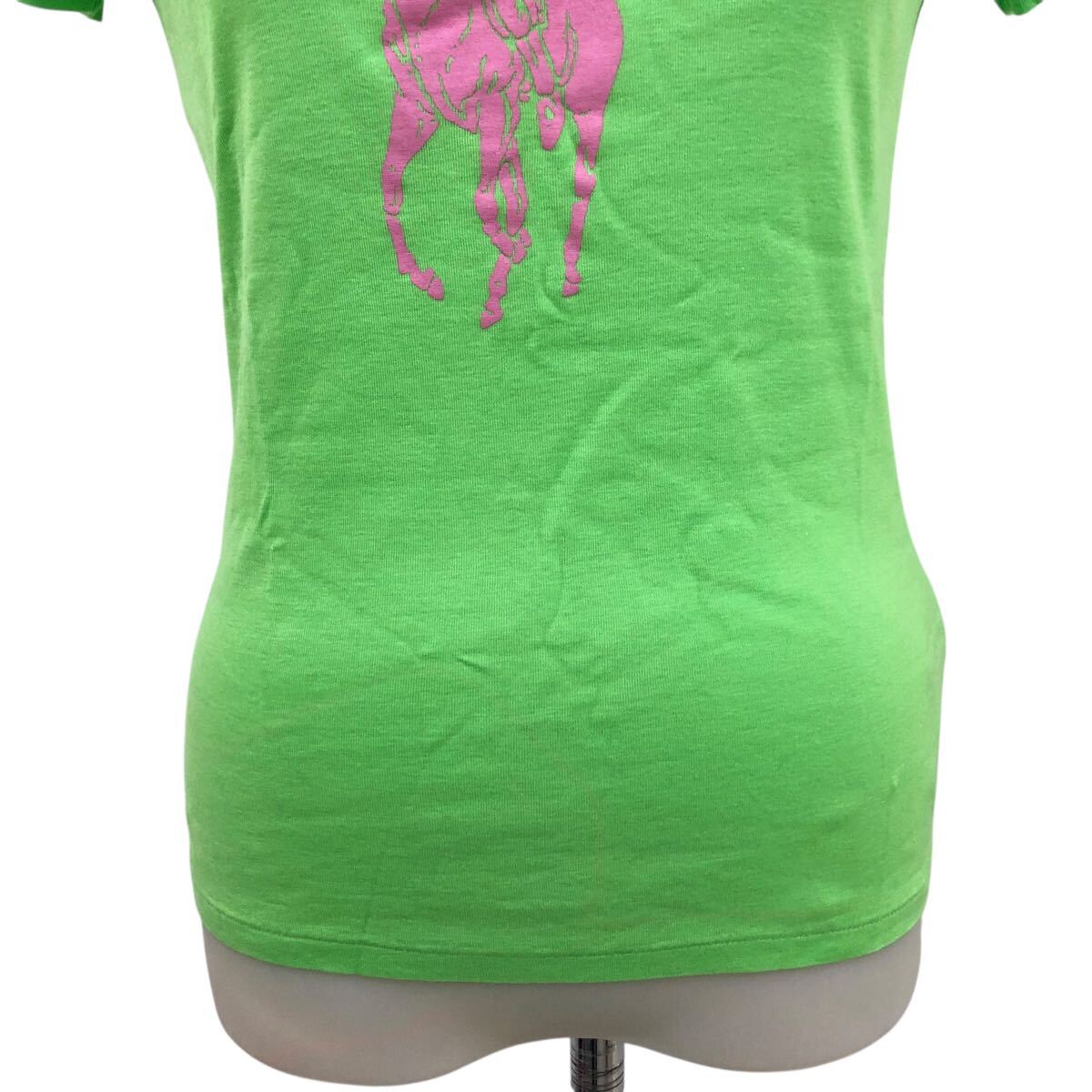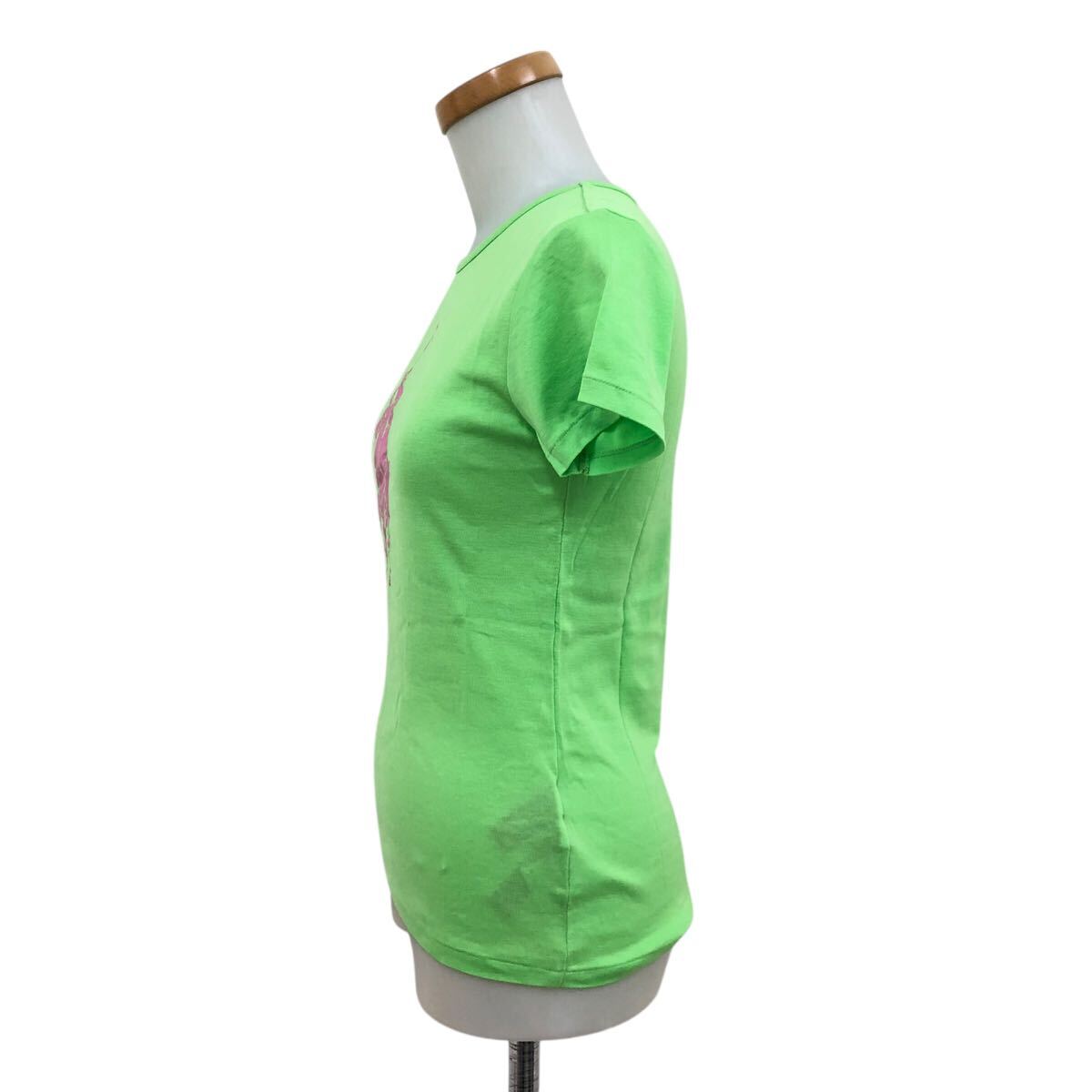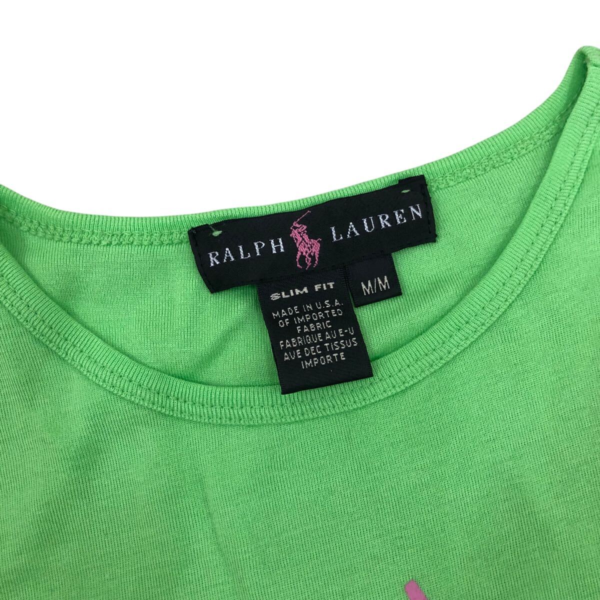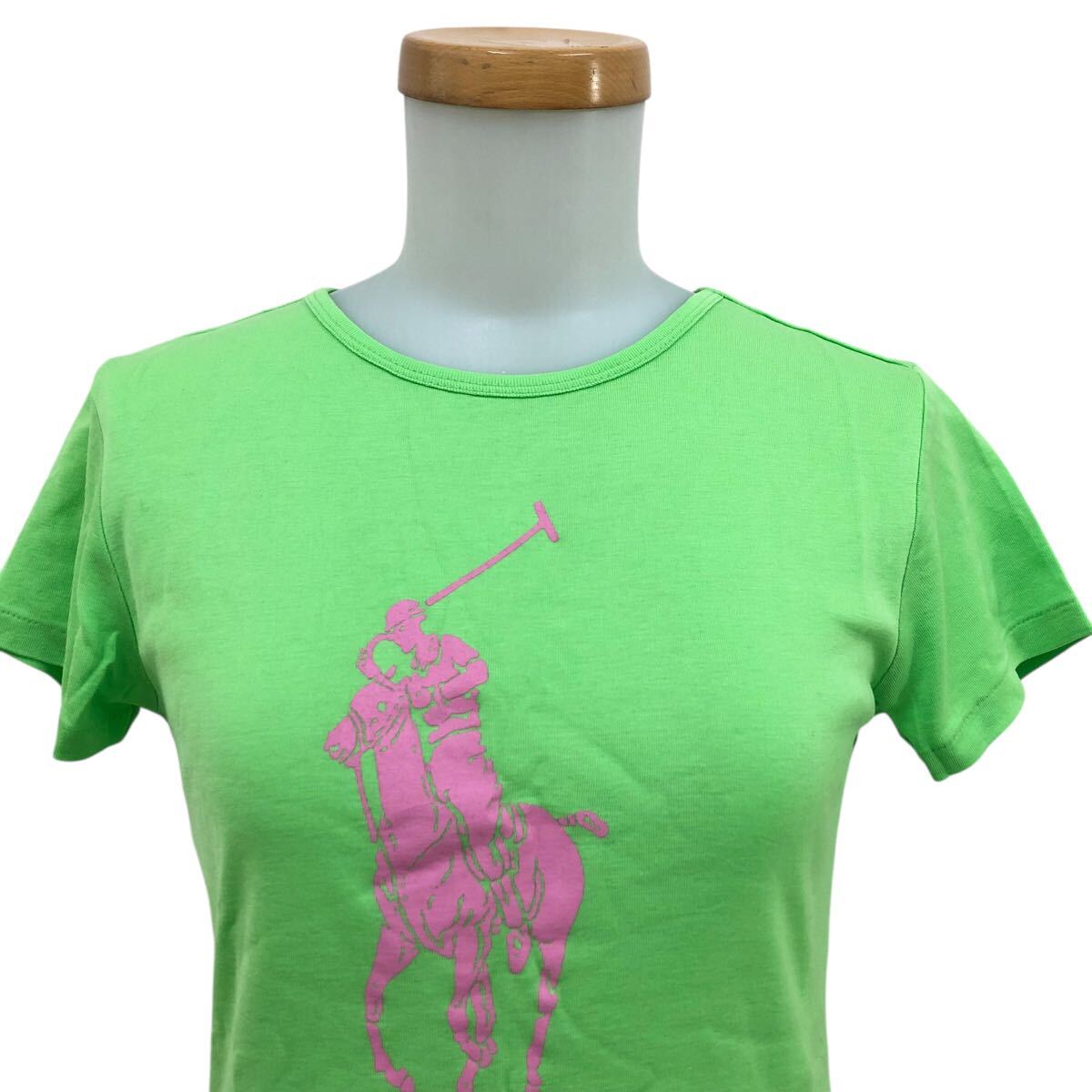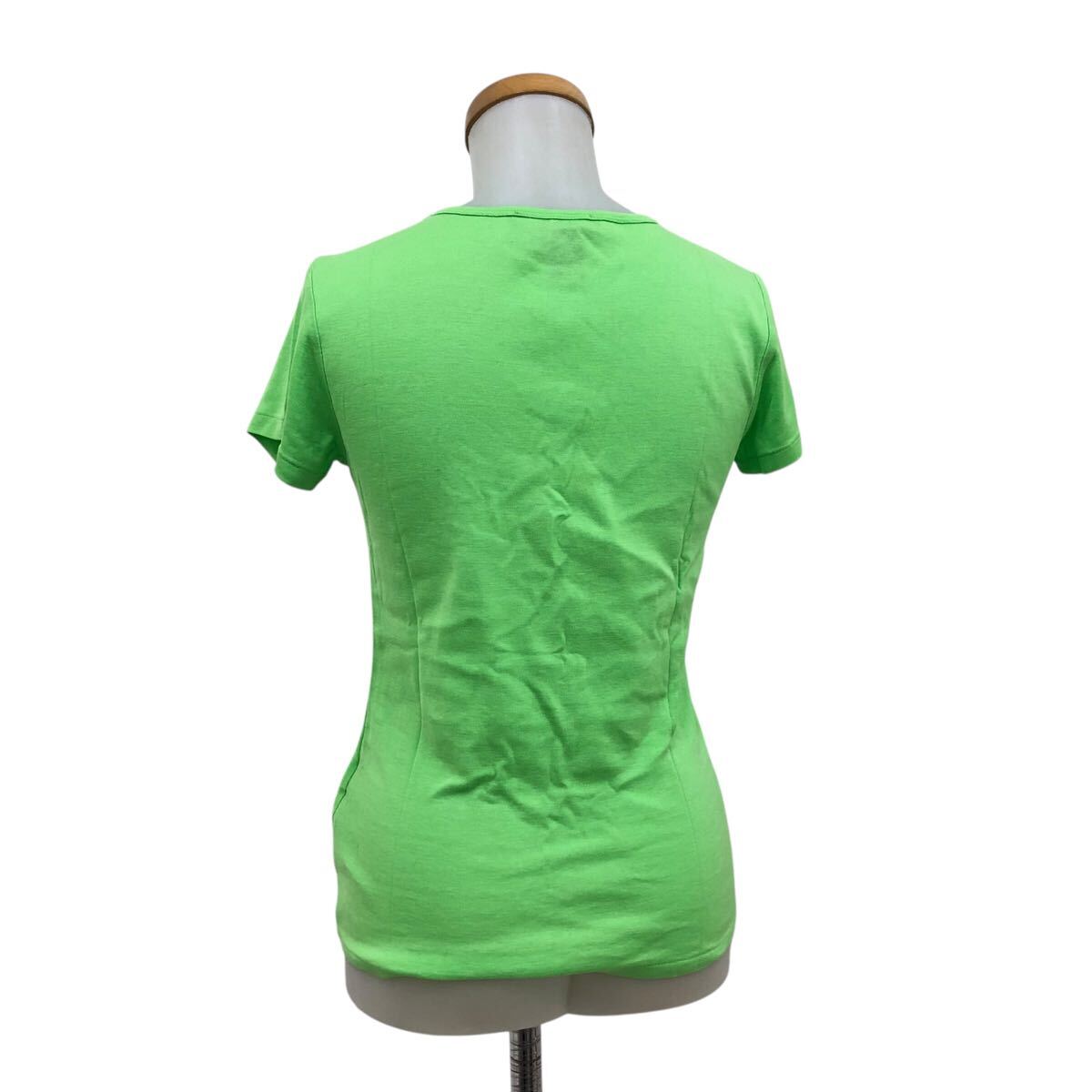 9Nm320-75 USA製 RALPH LAUREN ラルフローレン 半袖 ビッグポニー プリント Tシャツ カットソー slim fit トップス グリーン系 レディース M
