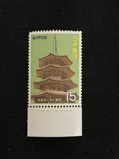 切手 単片 【第1次国宝シリーズ】室町時代 八角三重塔 銘板付き