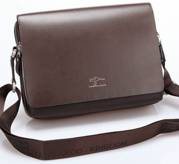 【 限定特価 新品 KANGAROO KINGDOM メンズ ショルダーバッグ ブラウン 茶 高級PUレザー 横型 ビジネス 大人気 ブランド 機能性 耐久 防水 抗菌 上質 質感 逸品格安 お得 】