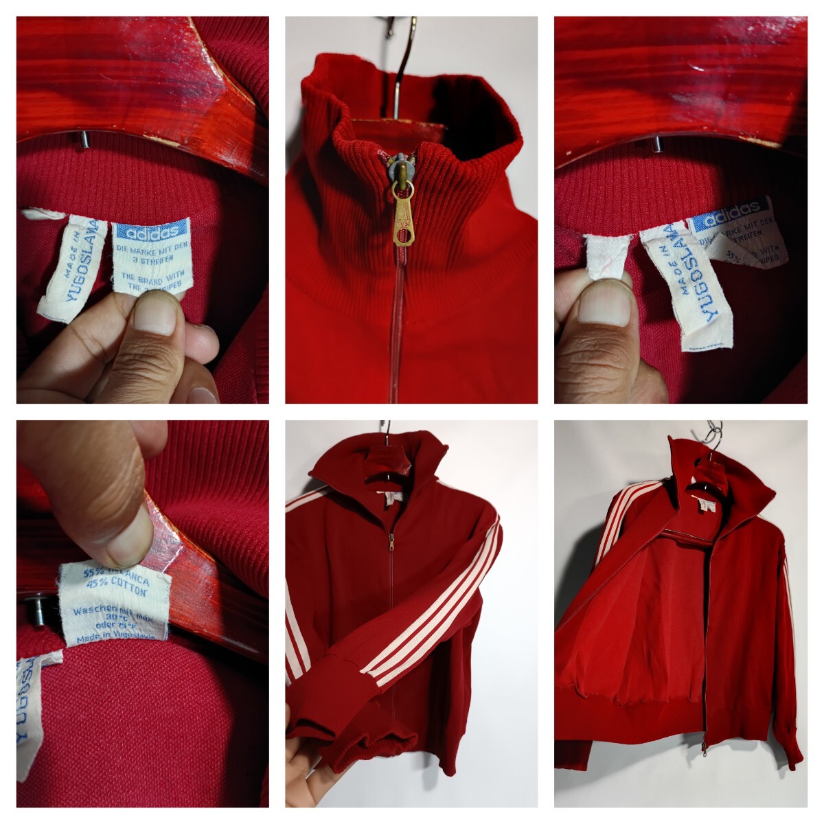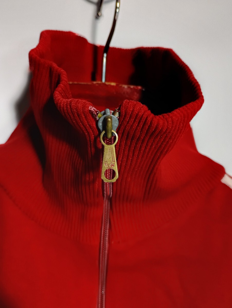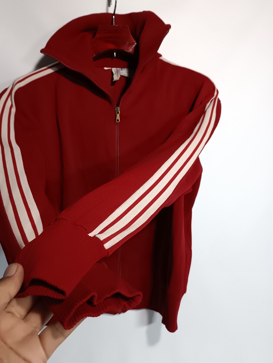 70's ヴィンテージ adidas アディダス ユーゴスラビア製 えんじ色? 赤×クリーム MEGAジッパー トラックジャケット ジャージ 2