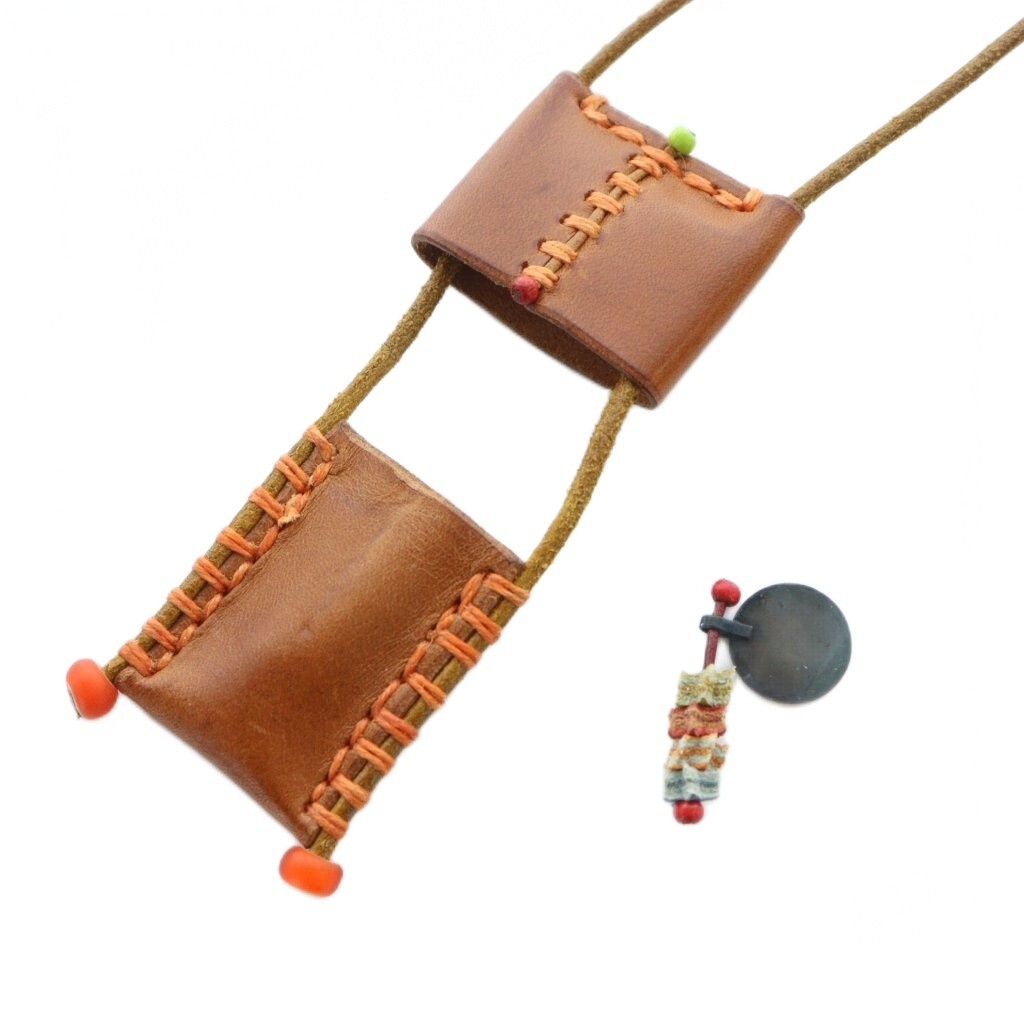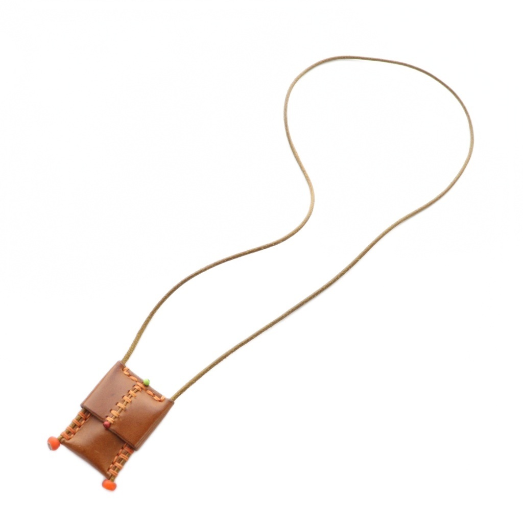 アンリークイール HENRY CUIR ネックレス アクセサリー ペンダント レザー ステッチ ロゴ 茶 ブラウン ■GY18 /MQ レディース