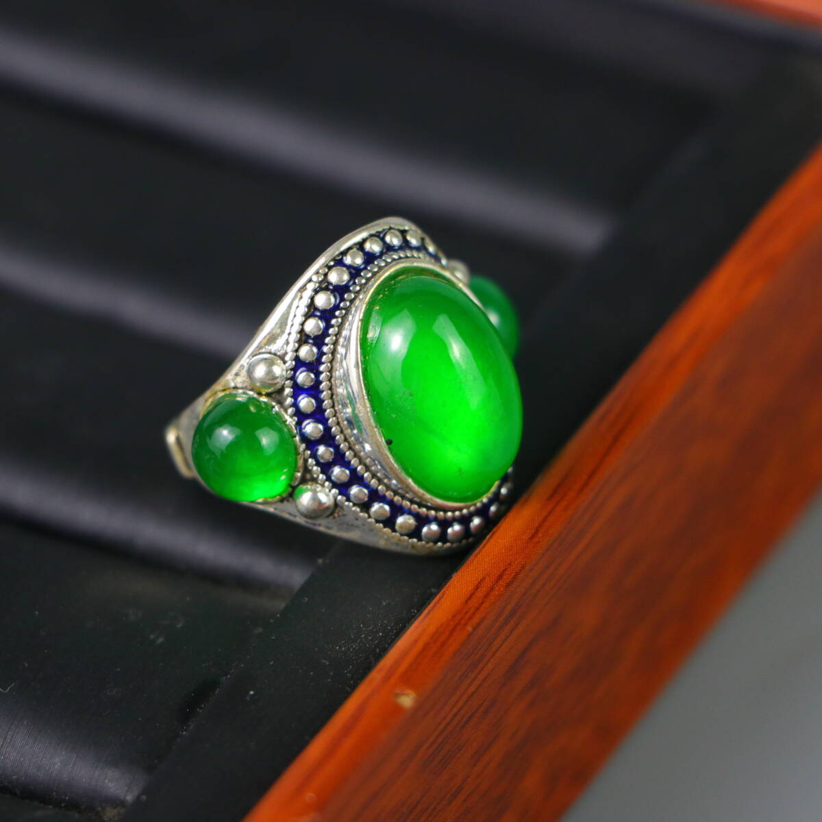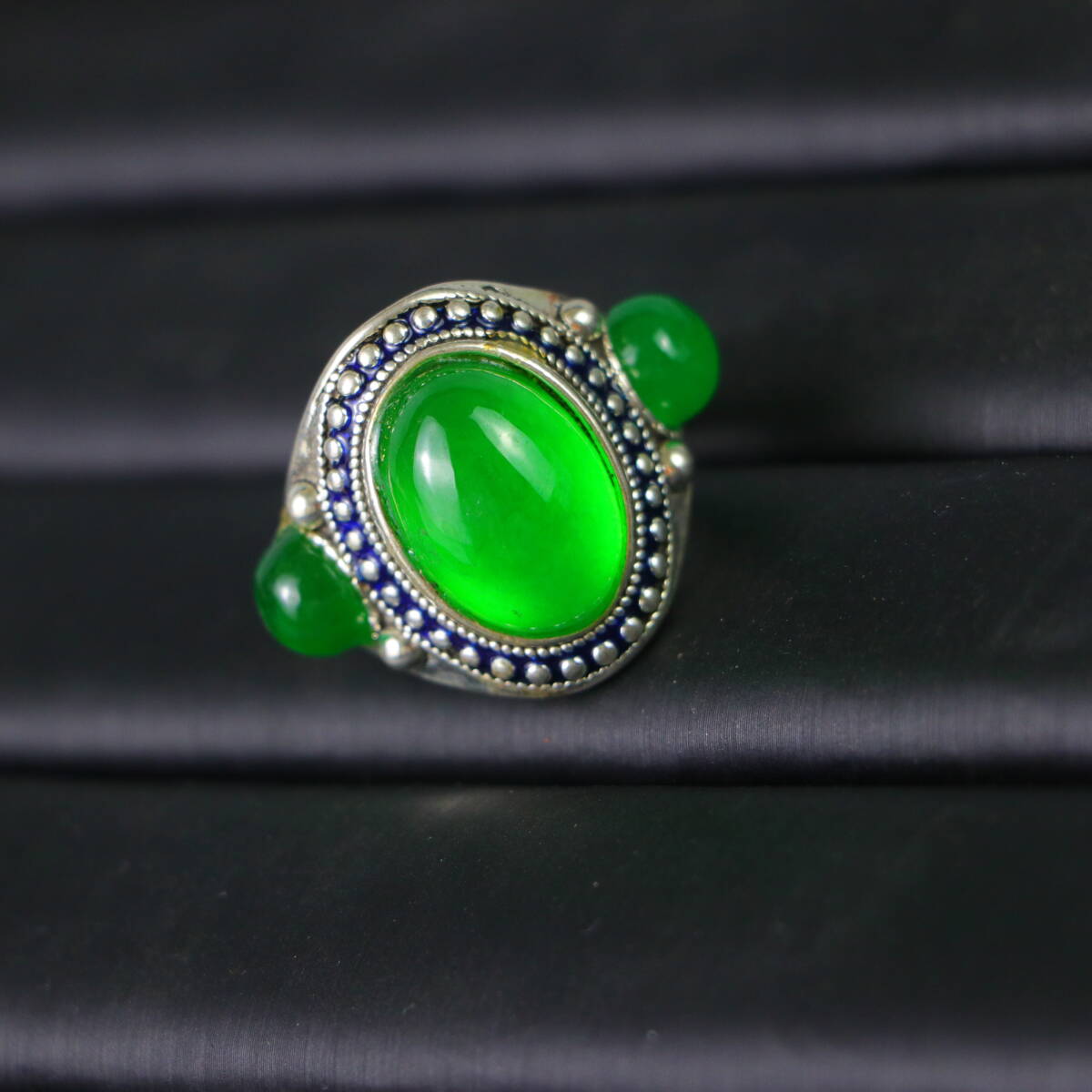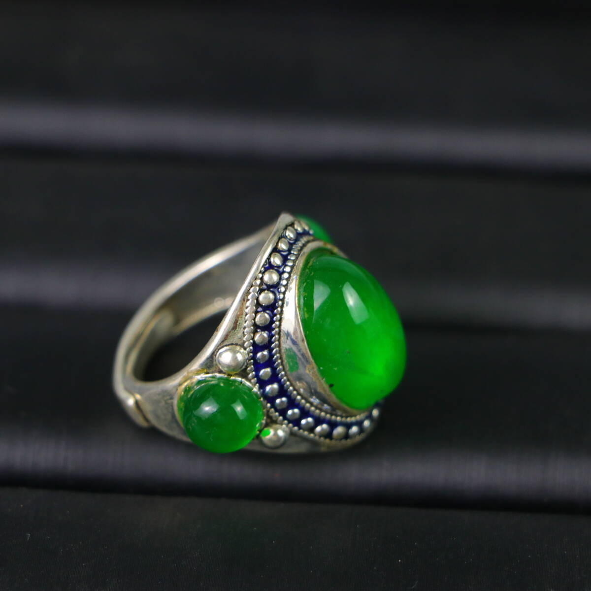 清時代 宮廷御供 高氷 翡翠彫 帝王緑 翡翠 戒指 指環 可調節 古擺件 時代物 古董品 骨董 收集 旧家蔵出し 唐物 中国古玩 古美術品