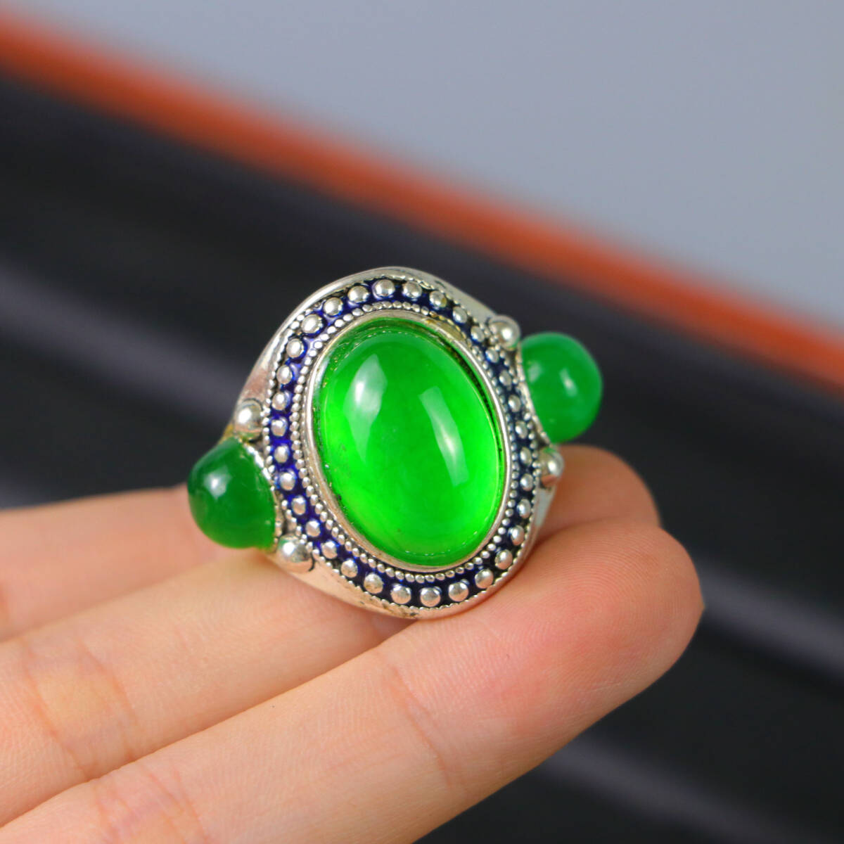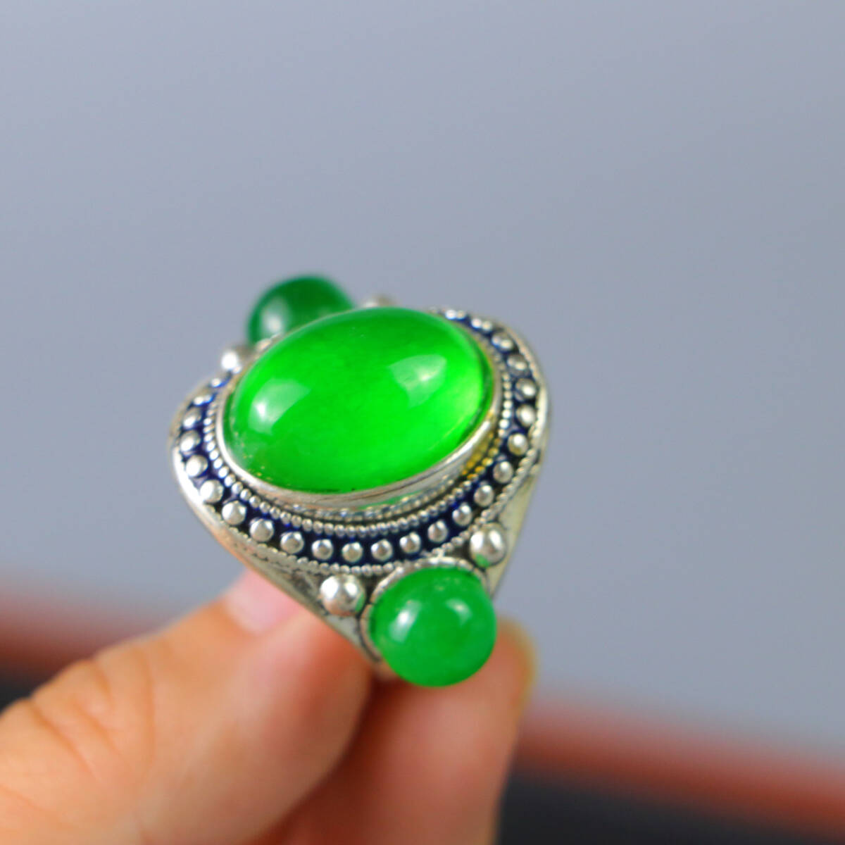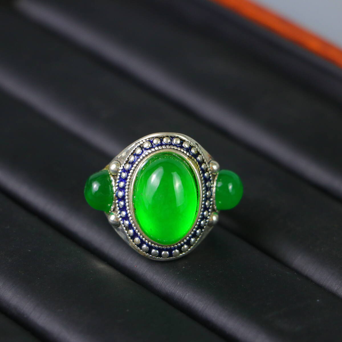 清時代 宮廷御供 高氷 翡翠彫 帝王緑 翡翠 戒指 指環 可調節 古擺件 時代物 古董品 骨董 收集 旧家蔵出し 唐物 中国古玩 古美術品