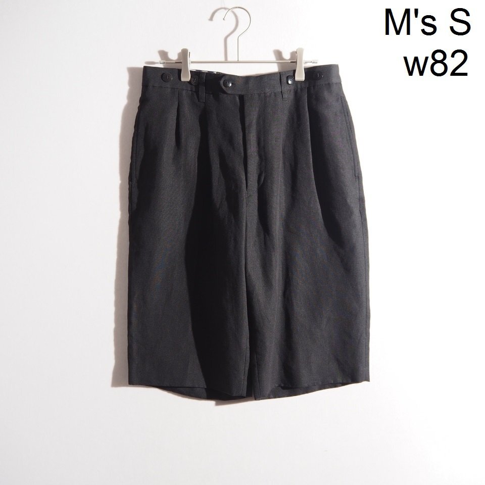 21SS リネン 2タック ハーフパンツ ブラック S オーバーサイズ