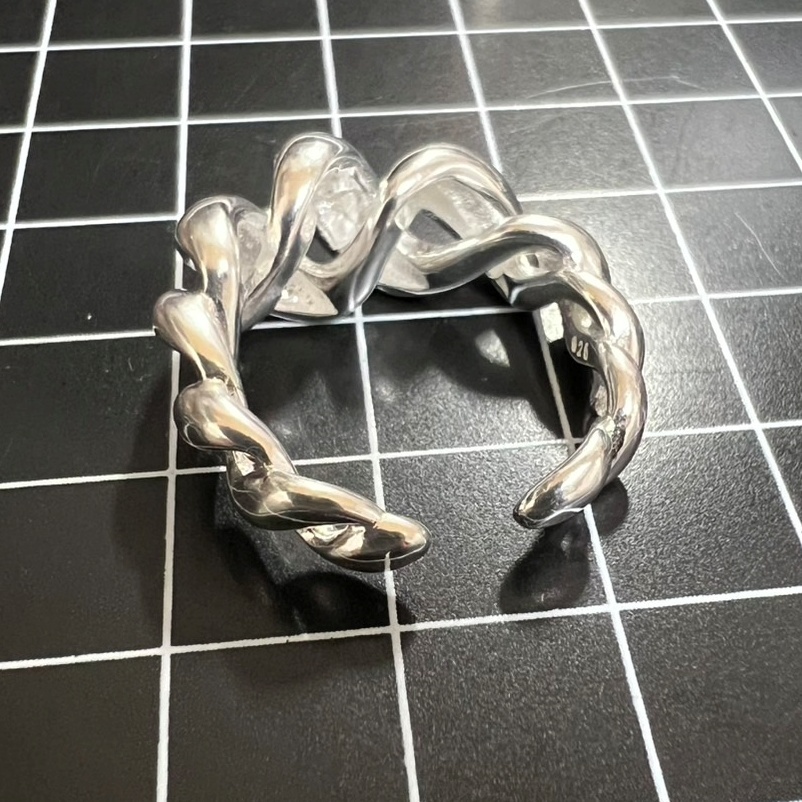 A869 匿名配送 指輪 レディース メンズ リング s925 シルバー 太い ワイド フリーサイズ サイズ調節可能 ひねり ねじり 交差