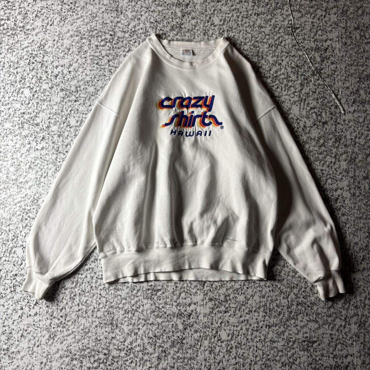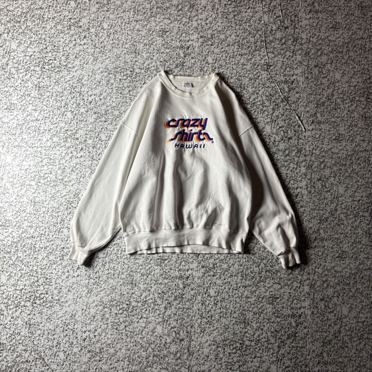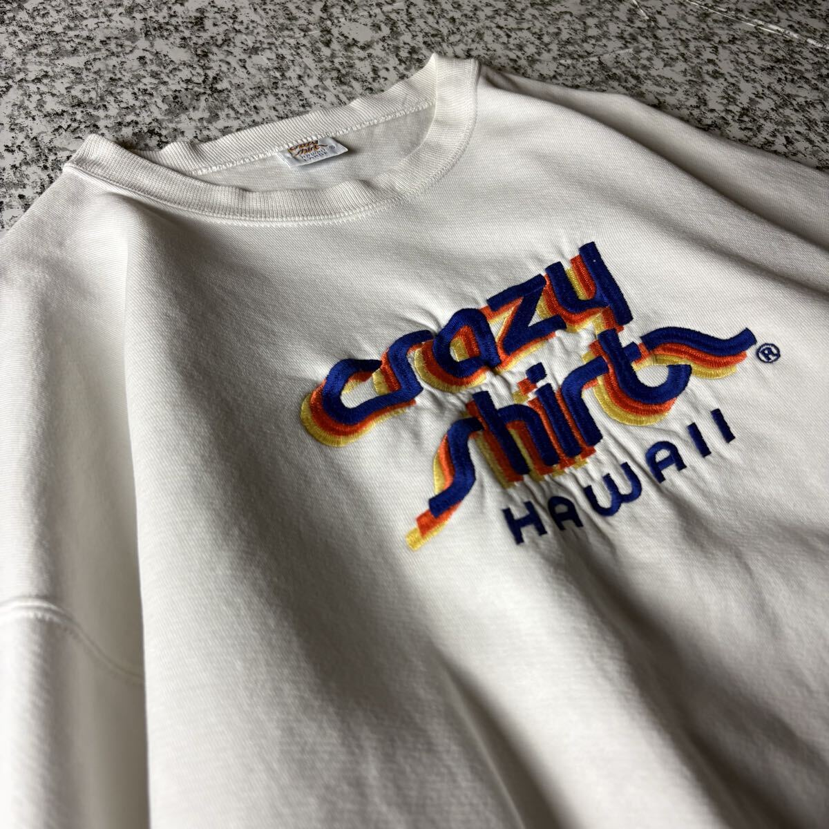 【90s USA製】クレイジーシャツ 刺繍ロゴ ビッグシルエットスウェットシャツ ホワイト Lサイズ 古着  トレーナー ヴィンテージ