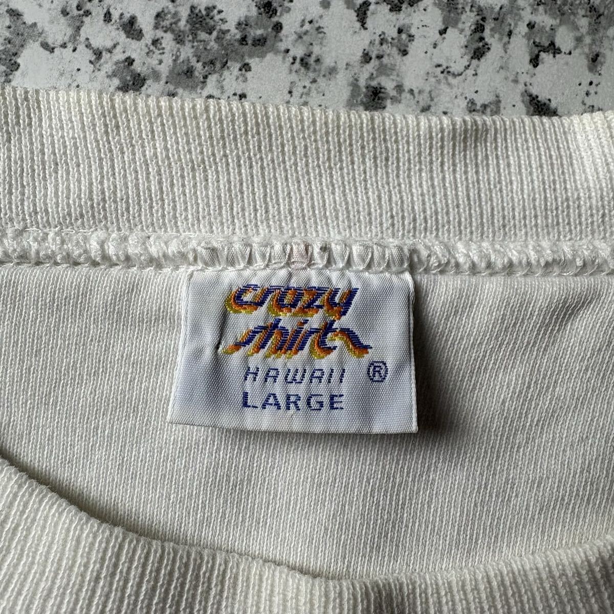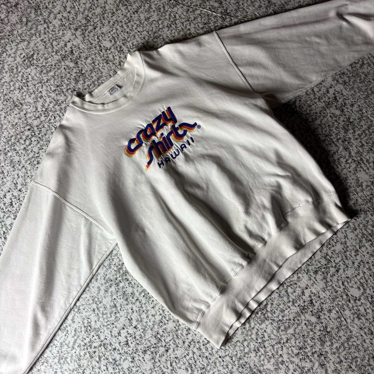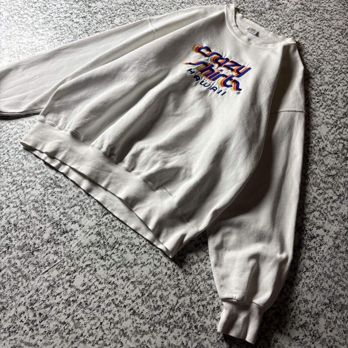【90s USA製】クレイジーシャツ 刺繍ロゴ ビッグシルエットスウェットシャツ ホワイト Lサイズ 古着  トレーナー ヴィンテージ