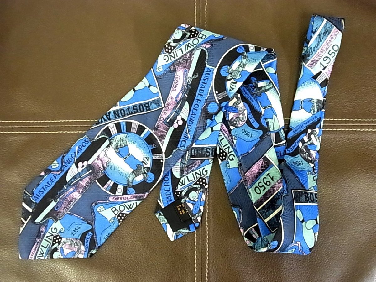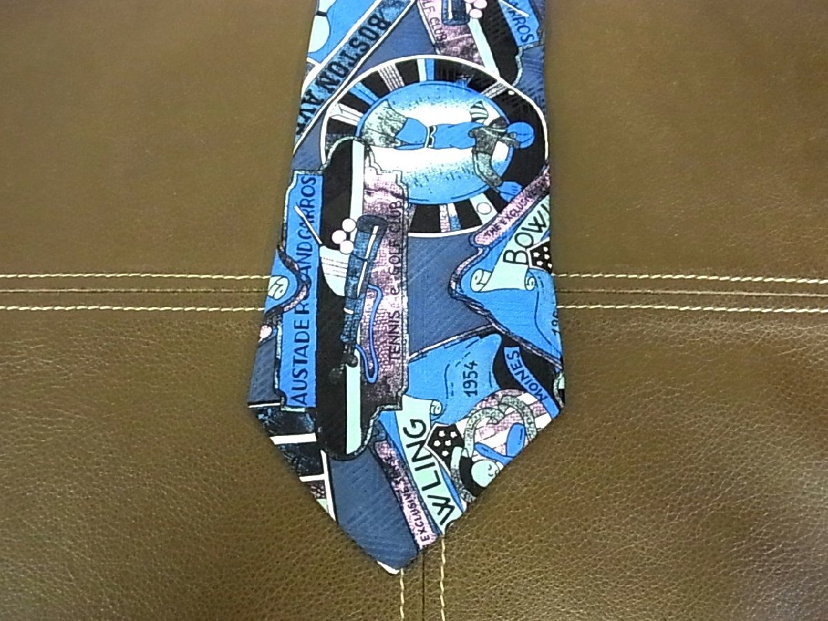♪C7860「良品」【シルク100% ボーリング ポスター 柄】ネクタイ♪