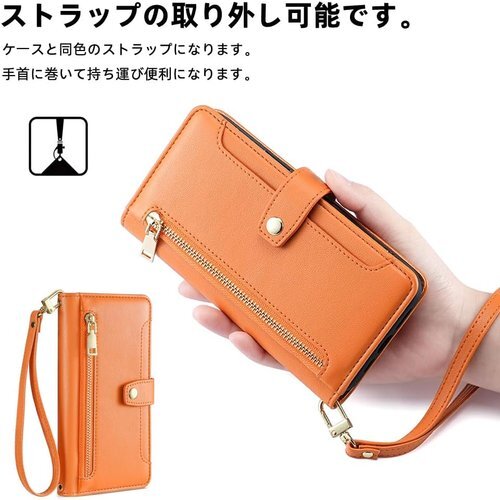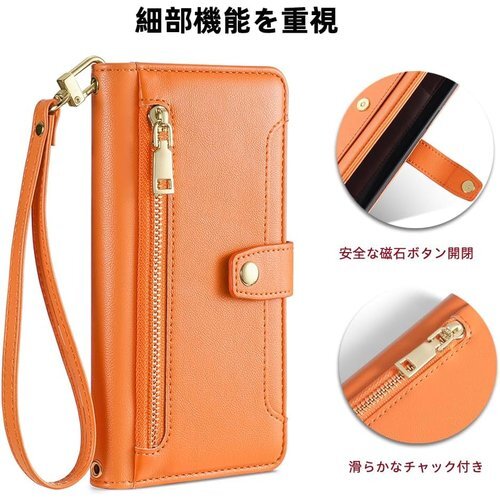 Xiaomi Redmi Note 12 ケース COKOVI Redmi Note 12 4G カバー 対応 カード ホルダー付き 手帳型 財布型 ストラップと首掛け付き ショルダーストラップ 肩掛け 耐衝撃 御洒落 女性 可愛い おしゃれ 高級PUレザー サイドマグネット スタンド機能 ストラップ チャックポケット付き オレンジ 969