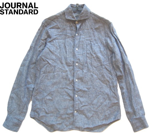 美品!!ジャーナルスタンダード JOURNAL STANDARD*麻100% 胸ポケット付き リネンワイドスプレッドカラーシャツ M Simplicite Plus