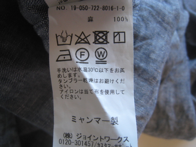 美品!! JOURNAL STANDARD(Simplicite Plus) 麻100% 胸ポケット付き リネンワイドスプレッドカラーシャツ