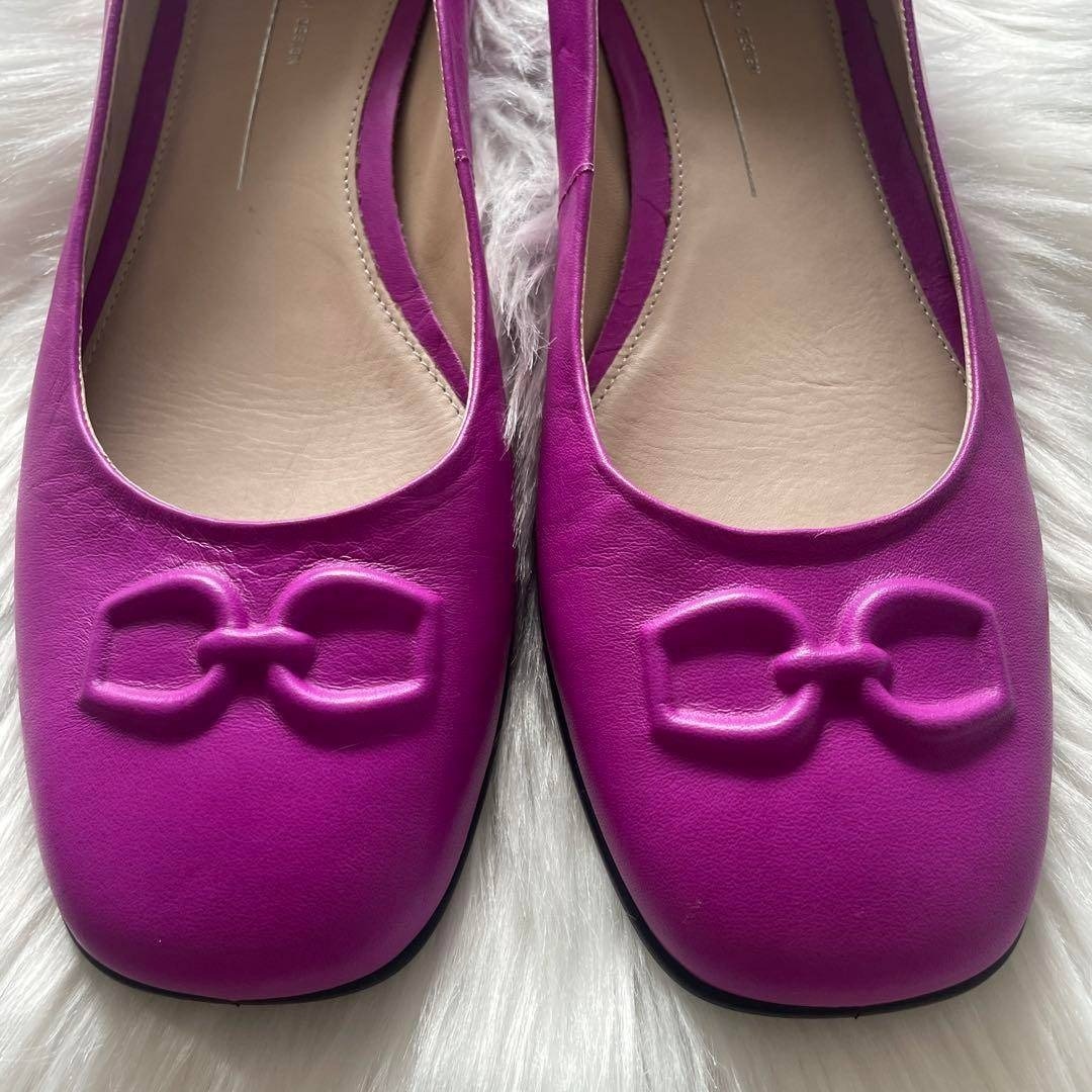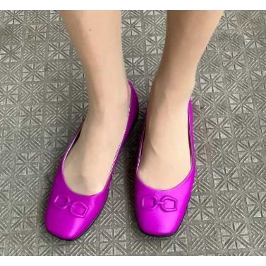ホースビットが埋め込まれたモダンなスクエアトゥのバレエシューズ。