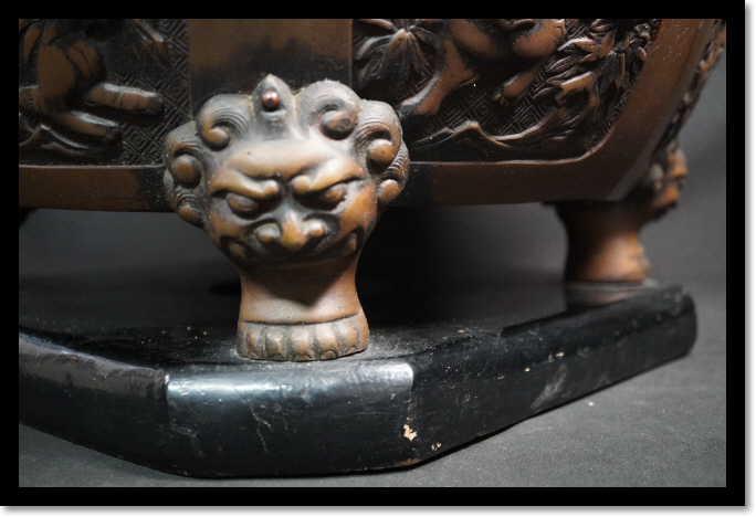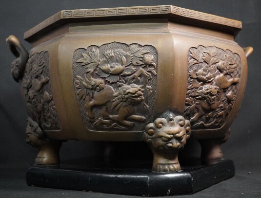 | 特大 18,1kg 瓶掛け 銅器 伊勢瓶掛 煎茶道具 牡丹獅子 彫刻 和骨董 茶室 火鉢 |