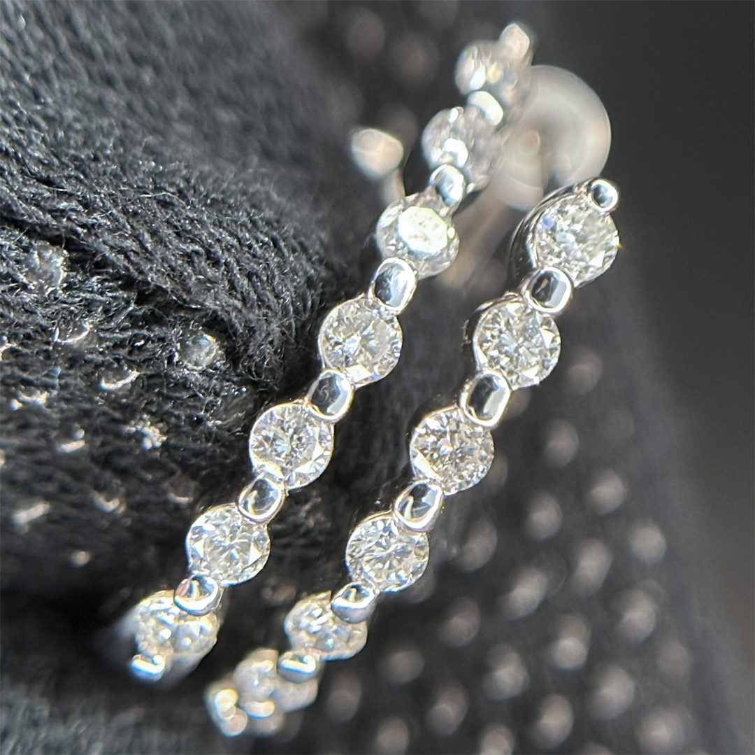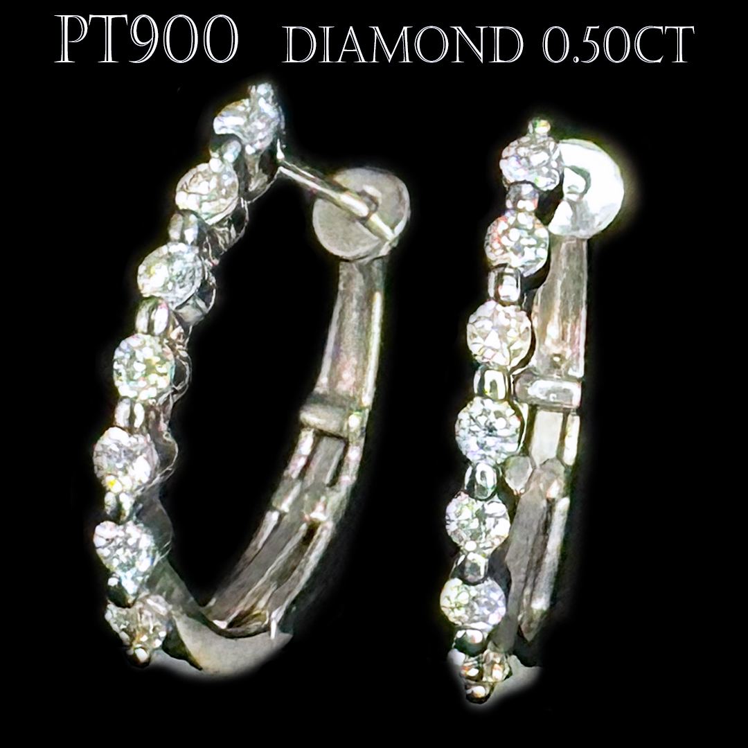 プラチナ Pt900 ダイヤモンド オーバル 楕円 フープ ピアス 0.50ct 中折れ式