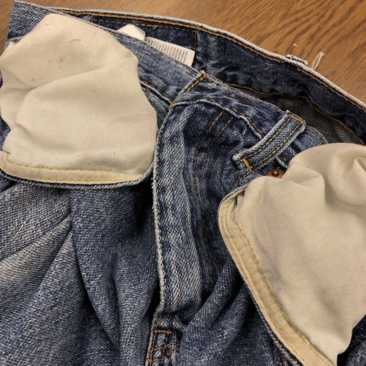 ●ウエスト→フロントボタンやジップは閉じ、ウエストの表中心と後ろ中心を合わせて机や床など平面な場所に置き、フラットに測れるよう生地を軽く手で押さえ、平置きしたパンツの左右端の最上部を計測、実寸した数値×2の表記をしてます。