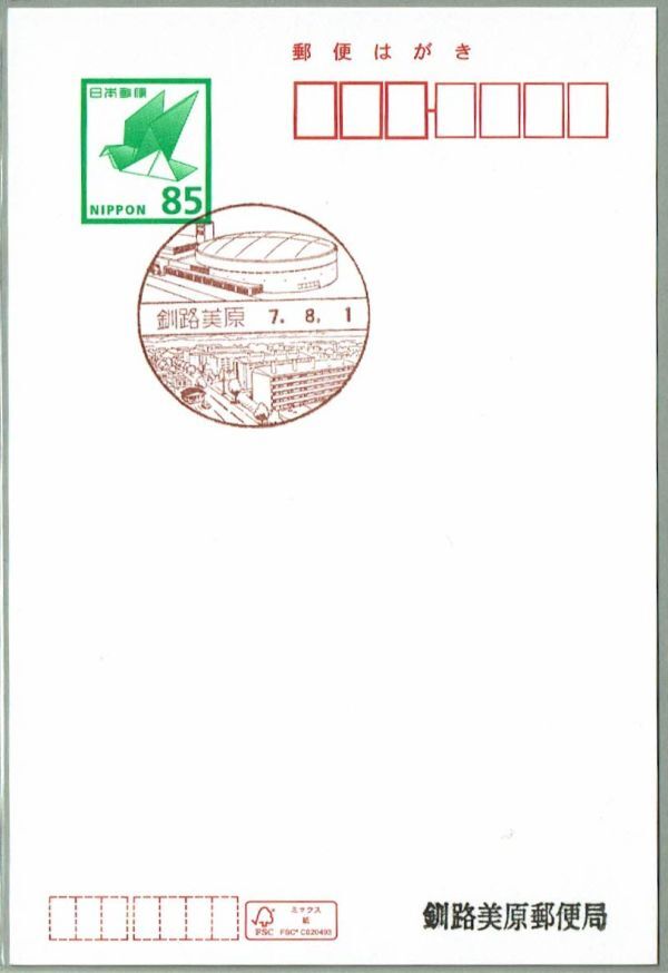 2025(令和7)年8月1日から使用開始された、風景印を官製はがきに使用開始の初日に押印。