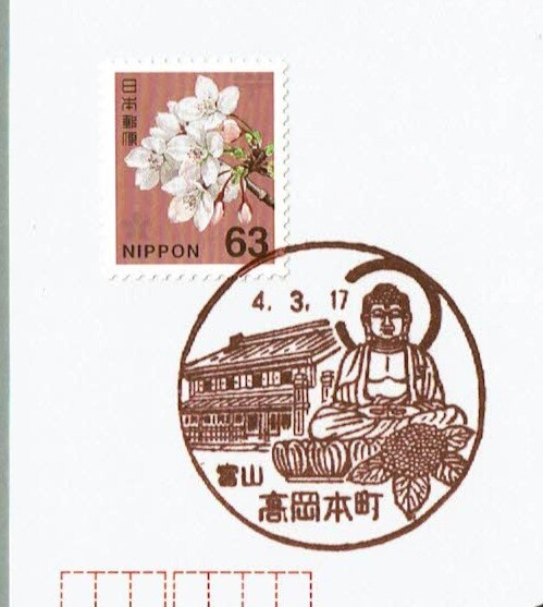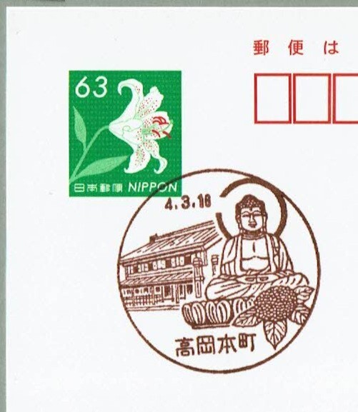2022(令和4)年3月18日に図案変更された、風景印を官製はがきに押印しています。