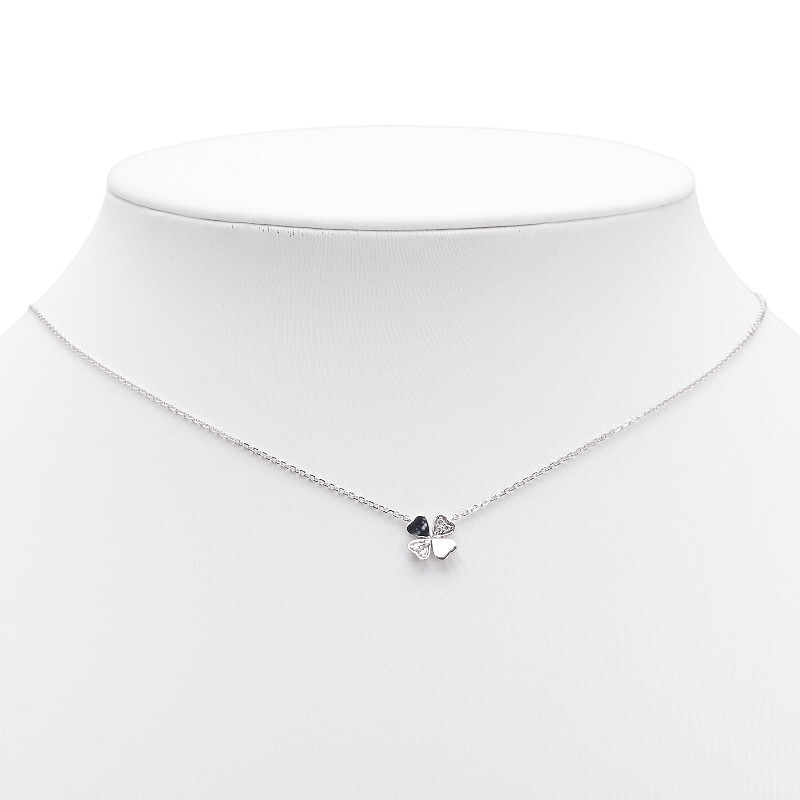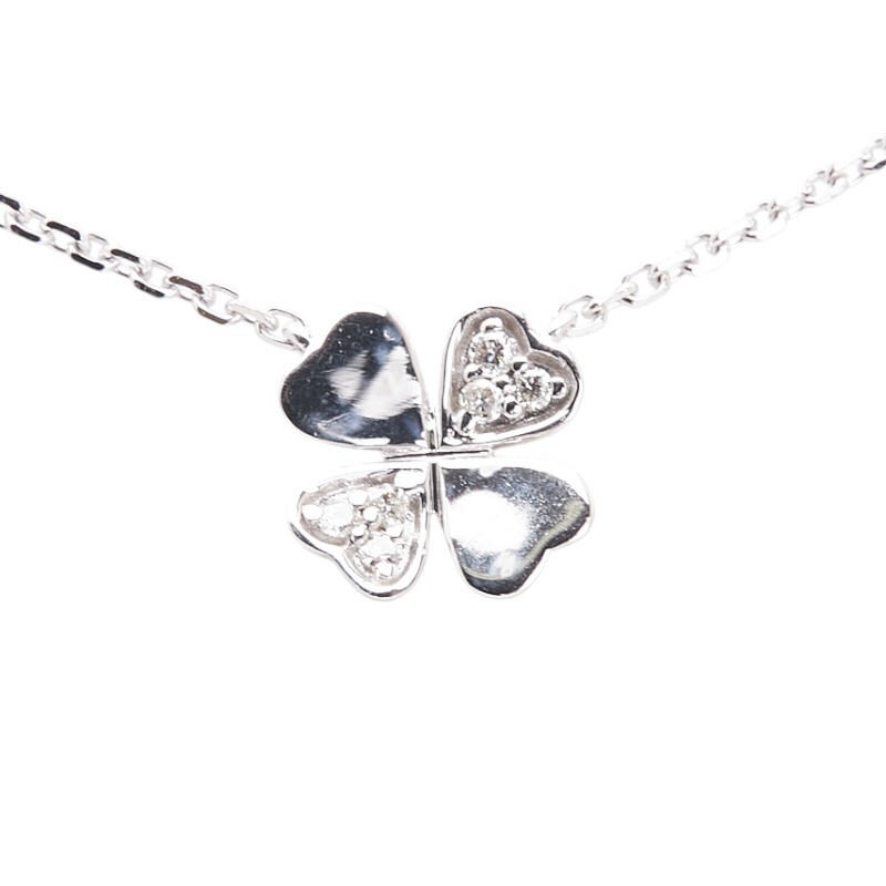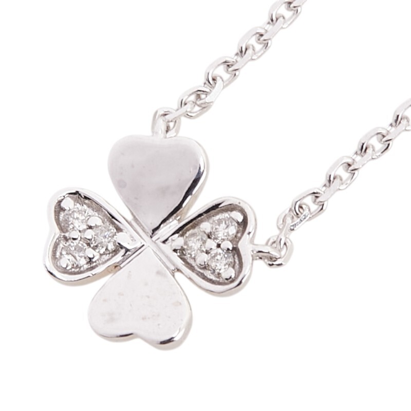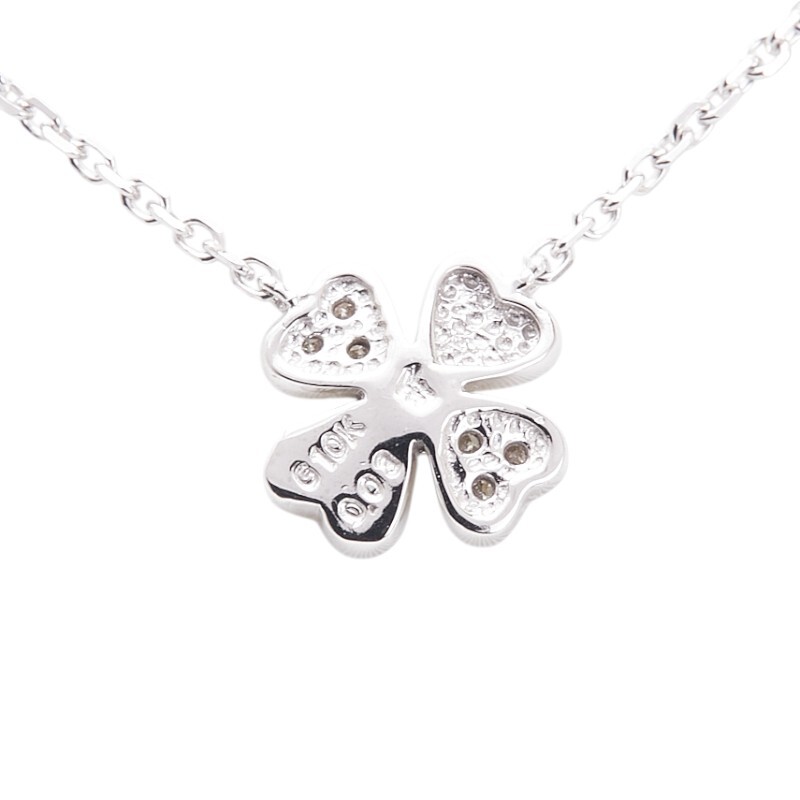 フォリフォリ K10WG ホワイトゴールド ダイヤ0.03 四つ葉 クローバー モチーフ ネックレス レディース Folli Follie 中古
