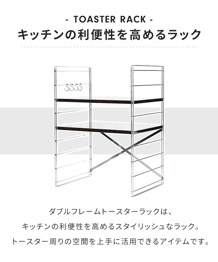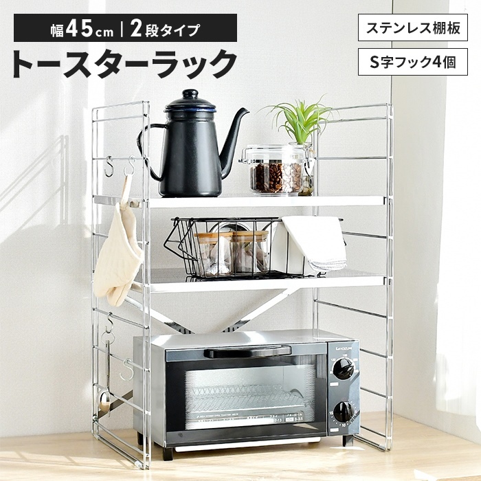 | トースターラック ステンレス製 幅45 高さ調整 2段 ダブルフレーム 丈夫 レンジラック キッチン収納 S字フック付き 便利 キッチンラック マルチラック キッチン収納 キッチン用品 収納ラック 頑丈 お手入れラクラク 炊飯器 レンジ トースター キッチン家電 コンパクト スタイリッシュ シンプル 日本製 国産 燕三条 |