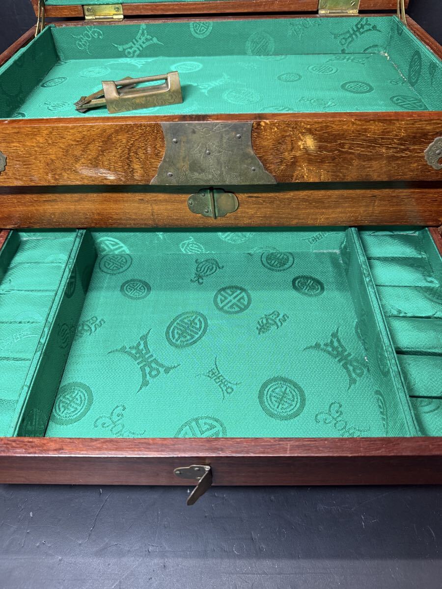 木製宝石箱の出品です。 長期保管になります。 経年による細かな傷、汚れ等はご了承ください。 脚分部の木が外れかけており、がたがたです。 所々、接着剤で修繕しています。 鍵は使い方がわからず、使用できるかわかりません。 現状品です。 上記ご理解の上ご検討ください。 状態など写真にてご確認ください。 基本的には used品の出品になります。 本文の記載事項があっても 現物優先とさせていただきます。 予めご了承下さいませ。 動作確認済みの物でも、時間の経過後の動作の保証はできません。 その他不明な点がございましたら、当方がわかる範囲にてお答えします。 | |||
