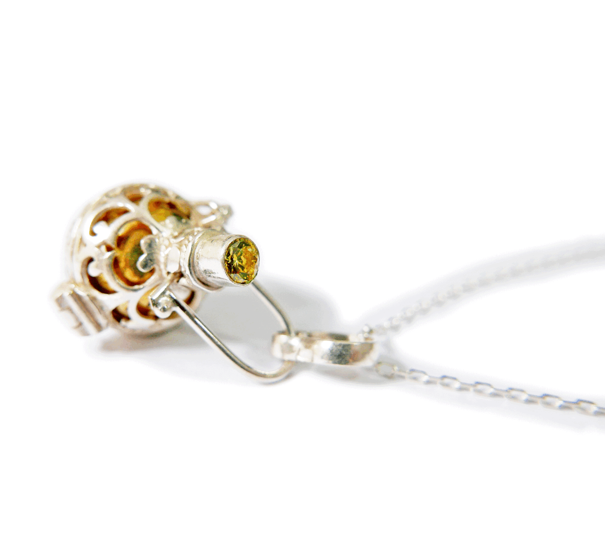 ☆セール☆シトリンのガムランボール☆揺らすとシャラン♪♪癒しの音色が響くヒーリングペンダント☆ シルバー製/11月誕生石/プレゼント
