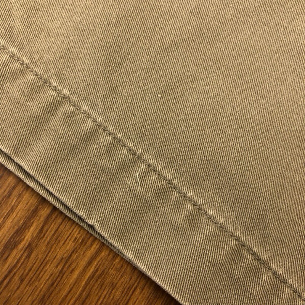 ●ウエスト→フロントボタンやジップは閉じ、ウエストの表中心と後ろ中心を合わせて机や床など平面な場所に置き、フラットに測れるよう生地を軽く手で押さえ、平置きしたパンツの左右端の最上部を計測、実寸した数値×2の表記をしてます。