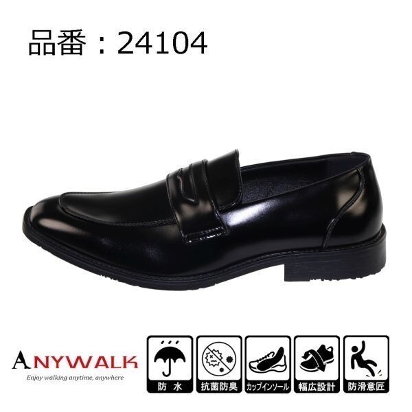 メンズ ビジネスシューズ 27.0cm Uチップ スリッポン ローファー カジュアル 4cm4時間 防水 撥水 抗菌 制菌 防臭 消臭 幅広 aw_24104