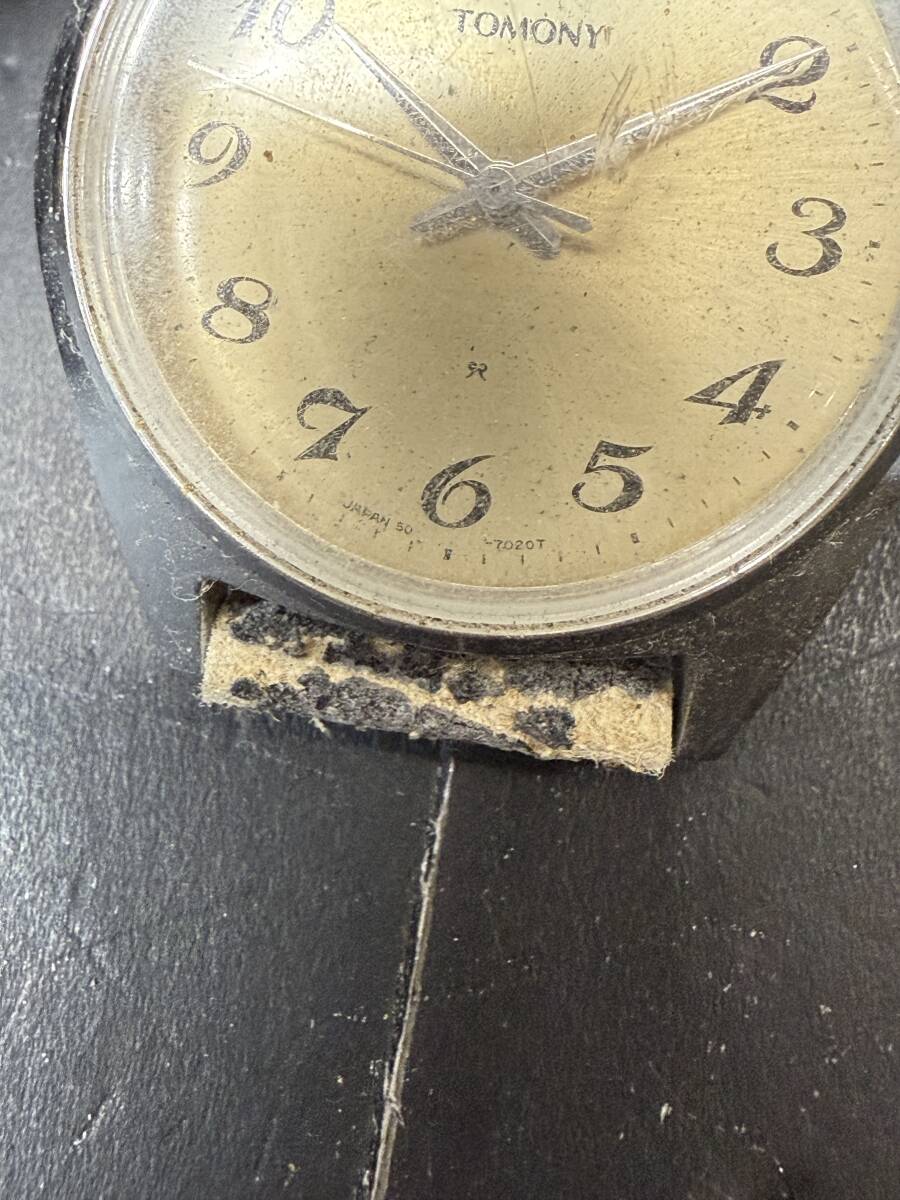 トモニー 手巻き式腕時計の出品です。 長期保管になります。 経年による傷や汚れ、スレ、くすみなどはご了承ください。 ベルトの劣化があります。 裏蓋は欠品しており、中がむき出しの状態です。 動作の確認、細かな内部の状態確認は行っておりません。 ジャンク品としての出品です。 現状品です。 上記ご理解の上ご検討ください。 状態など写真にてご確認ください。 基本的には used品の出品になります。 本文の記載事項があっても 現物優先とさせていただきます。 予めご了承下さいませ。 動作確認済みの物でも、時間の経過後の動作の保証はできません。 その他不明な点がございましたら、当方がわかる範囲にてお答えします。 |