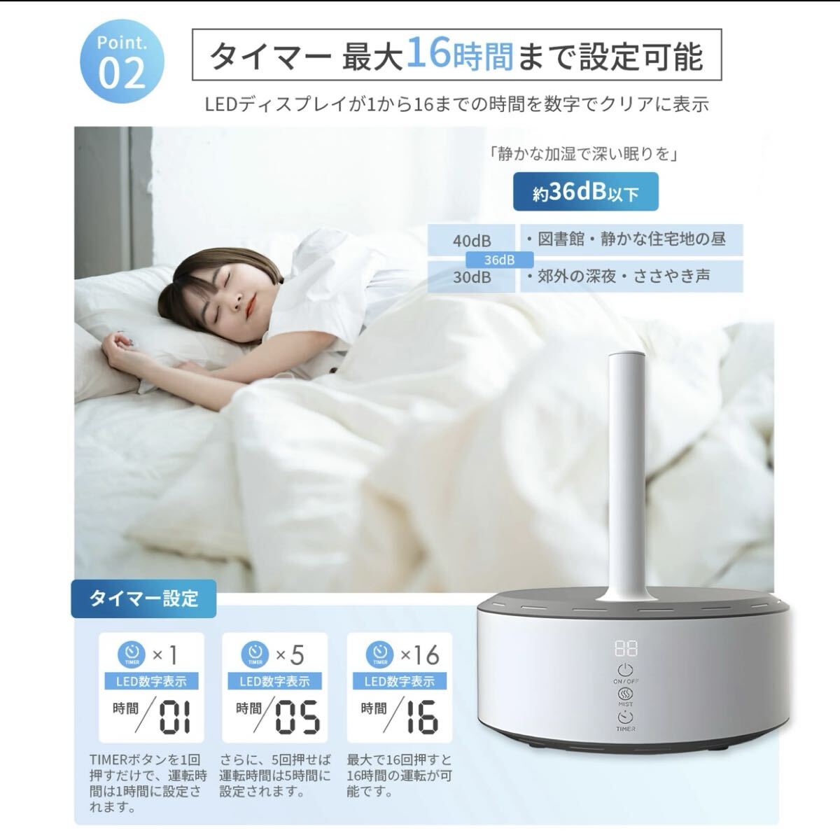 「極静音大容量超音波加湿器」機器の運転音がうるさすぎで眠れない?消音技術とDC油圧ファンにより、本機は35dB未満で作動します。驚くほど静かで快適な環境をご提供でき、今夜から安らかにぐっすり眠りましょう。ストレスや悩みの解消にも役に立つ!「アロマ機能」:アロマ専用ケースにお好みのエッセンシャルオイルを入れて、程よい湿度で快適に過ごせる上に、清潔で爽やかな香りをお楽しみいただけます。