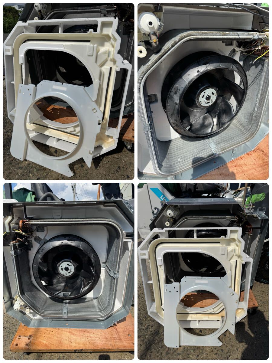 ※室内機、出来る限りで分解して清掃しました。アルミのフィン、プロペラ、発泡など清掃しております。