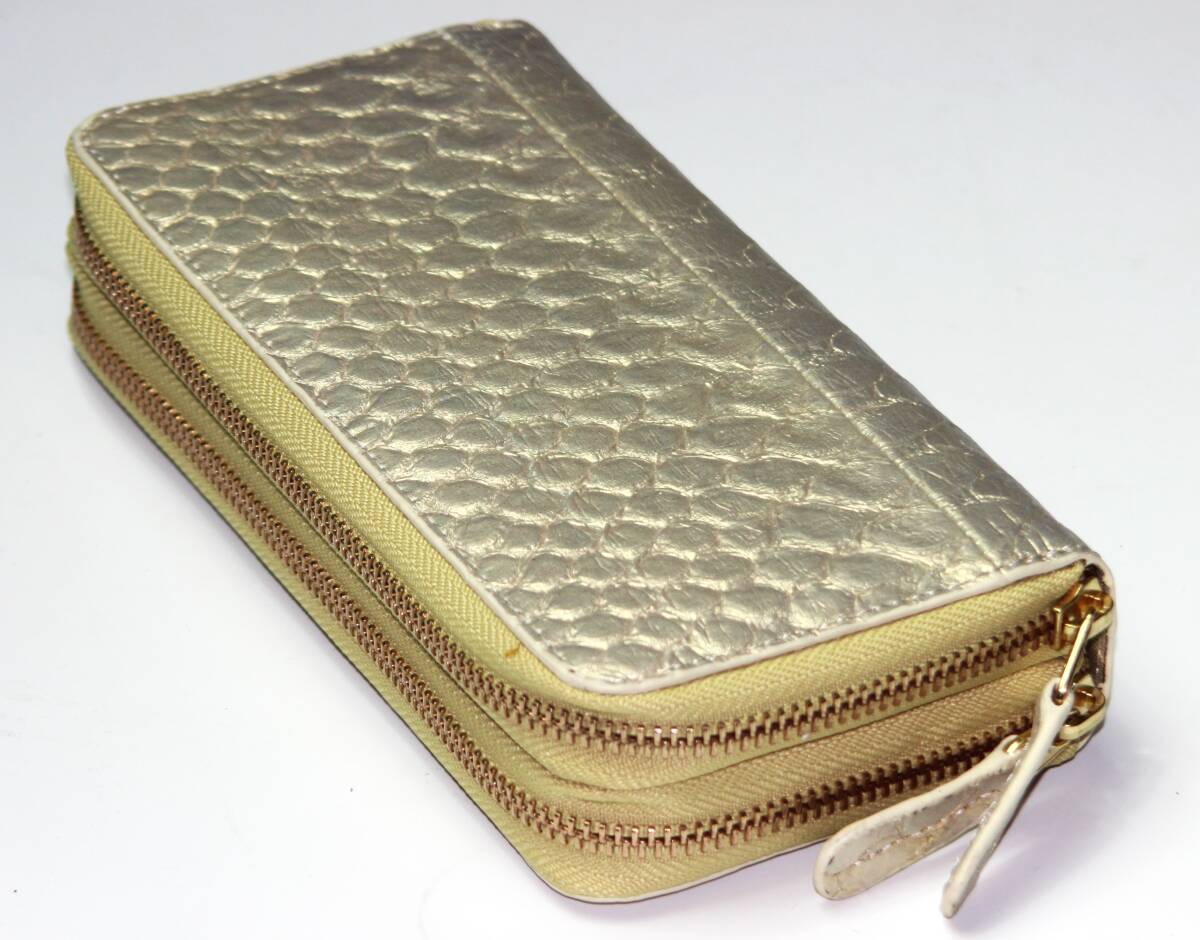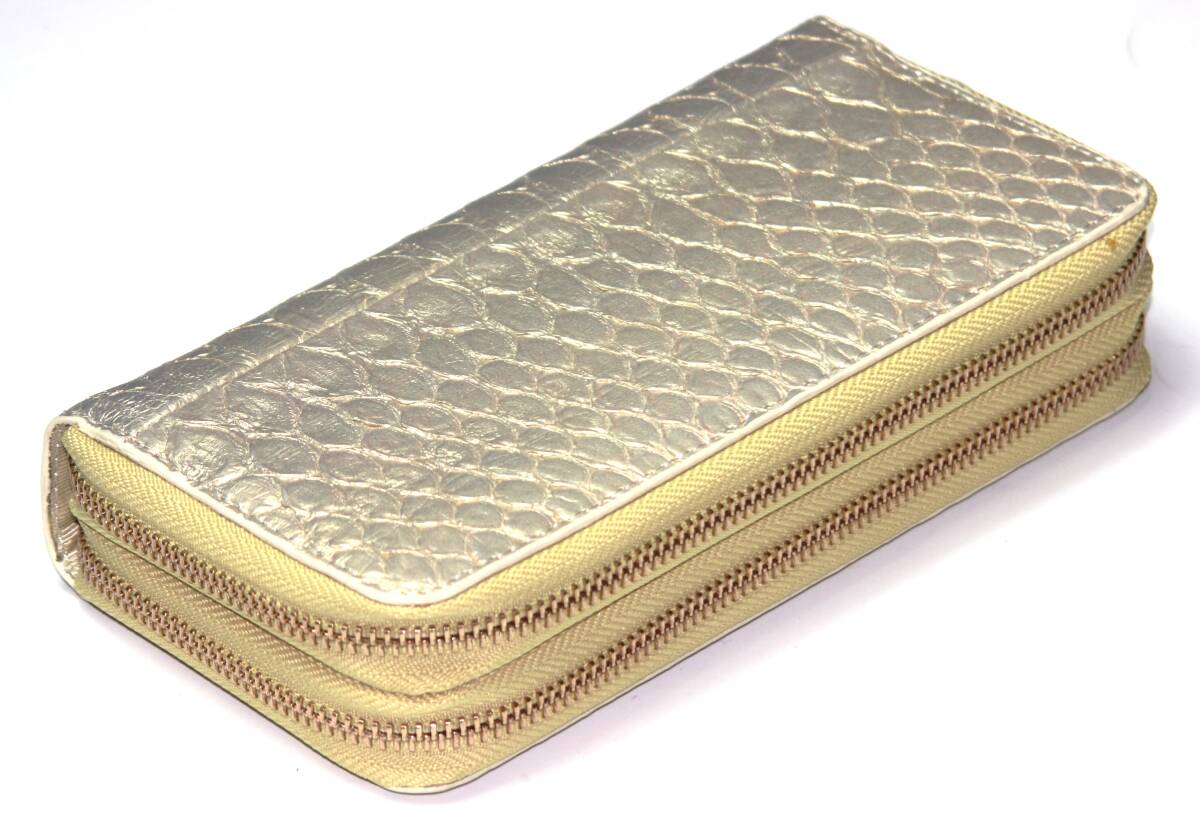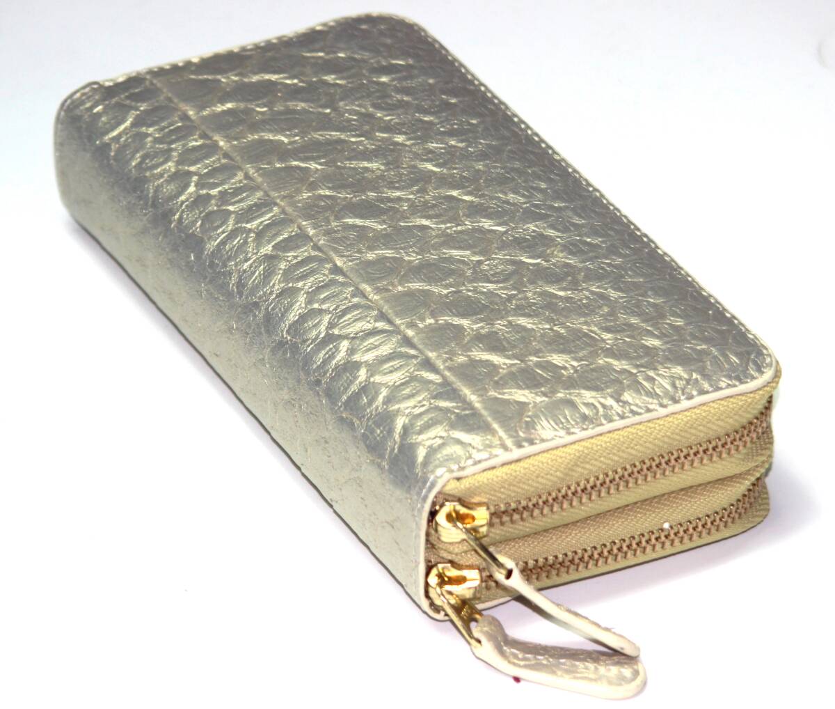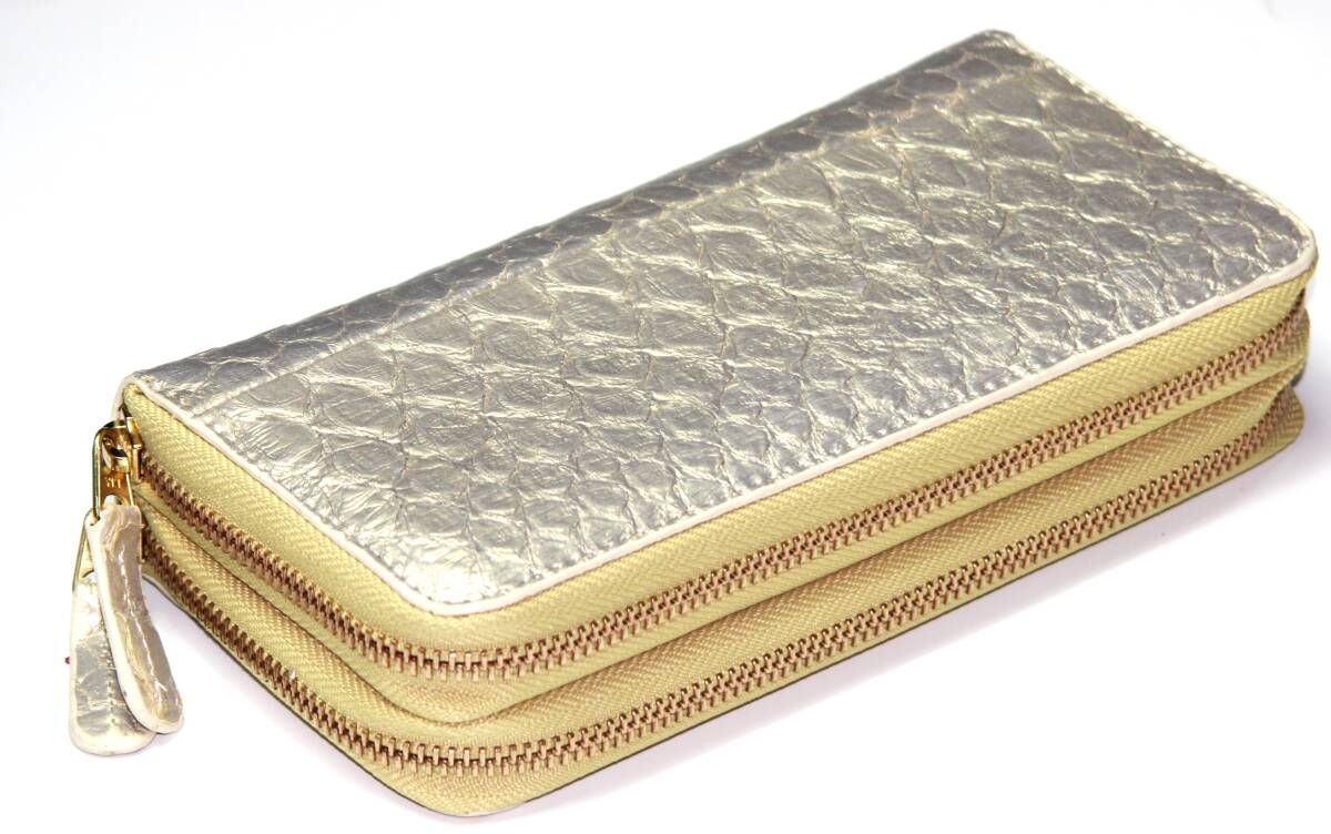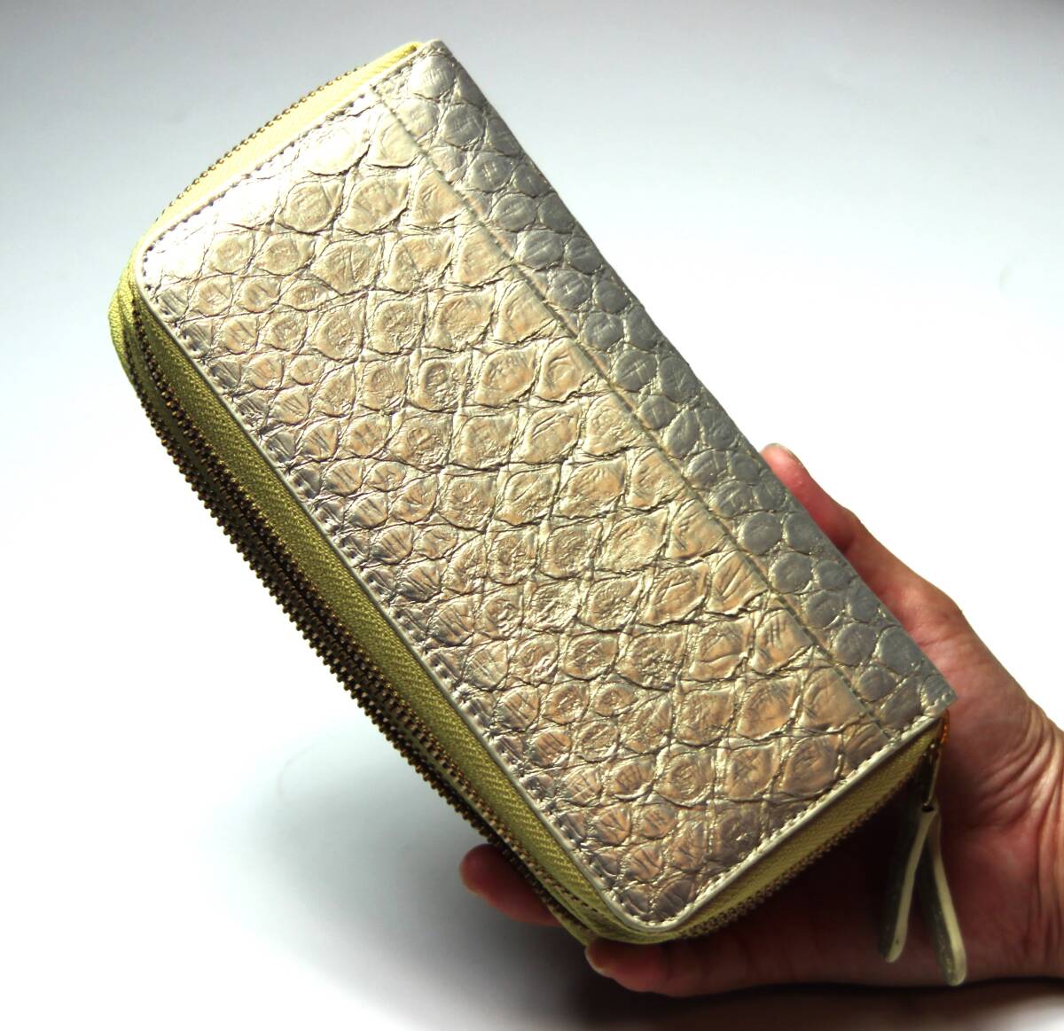 錦蛇皮の大判ウロコを使用したダブルファスナーのラウンド長財布。